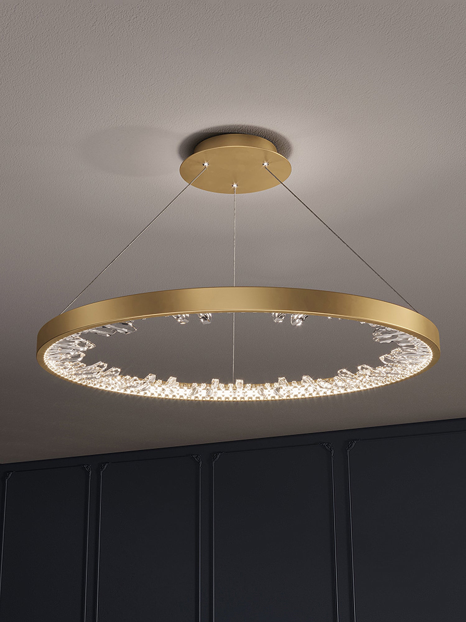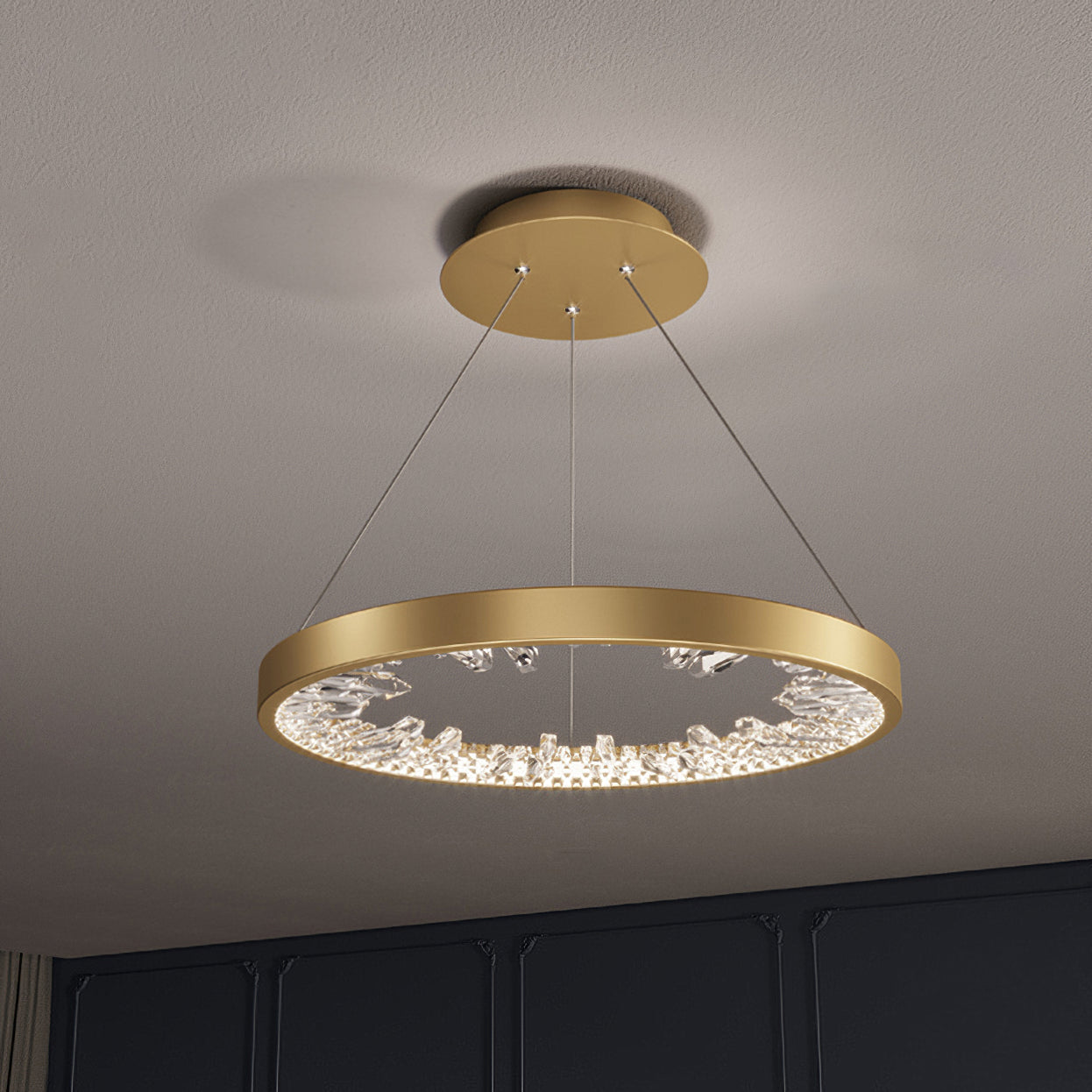The Luxury Circle Crystal Chandelier on häikäisevä valaisin, joka huokuu ylellisyyttä ja eleganssia. Tämä kristalli- ja metallimateriaalien yhdistelmästä valmistettu kattokruunu on upea keskipiste, joka lisää ripauksen loistoa mihin tahansa tilaan.