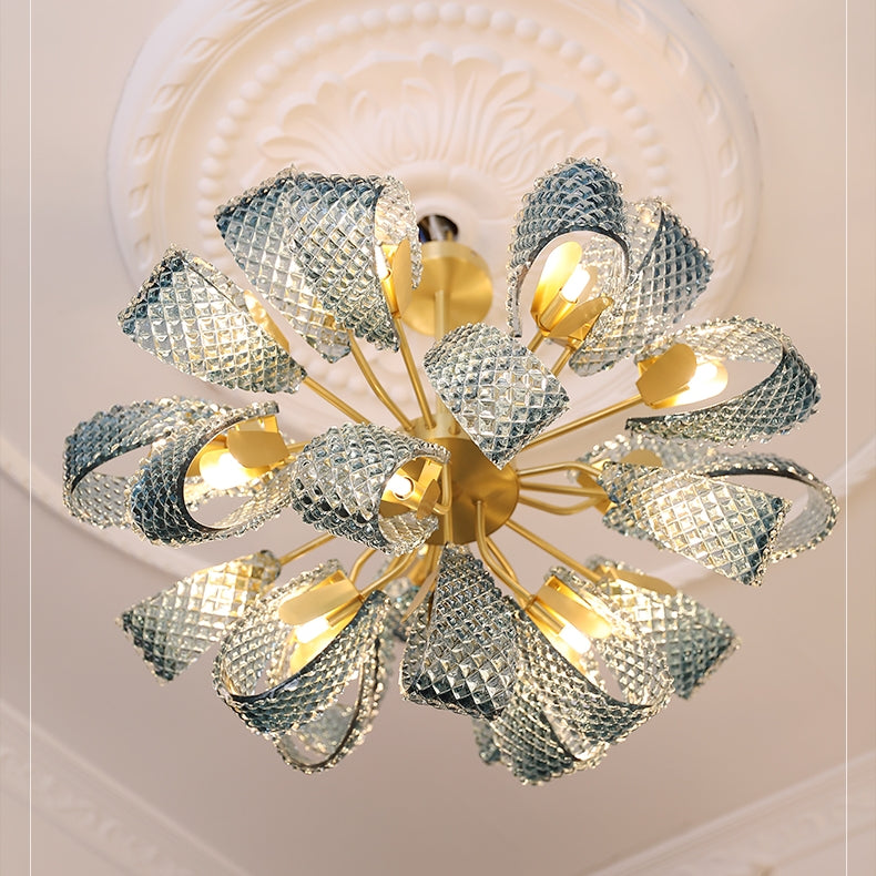 Ylellinen tyyli upea lasikattokruunu Moderni kuparikattokruunu