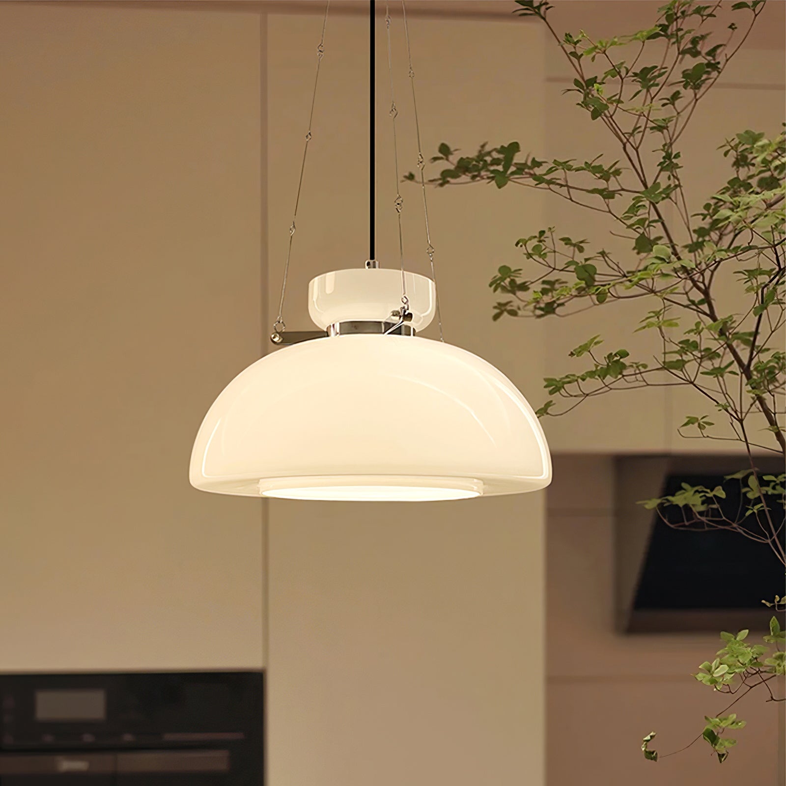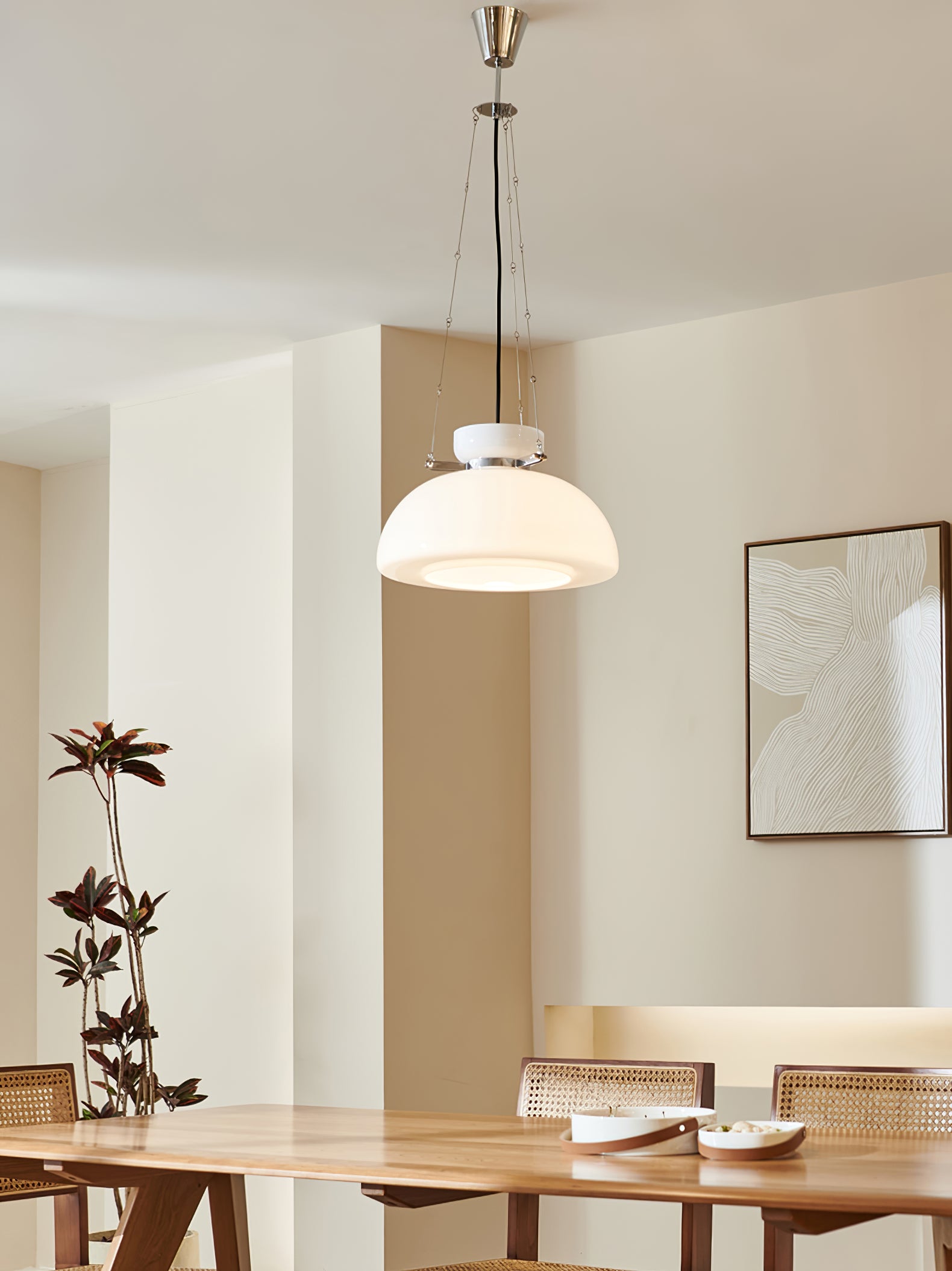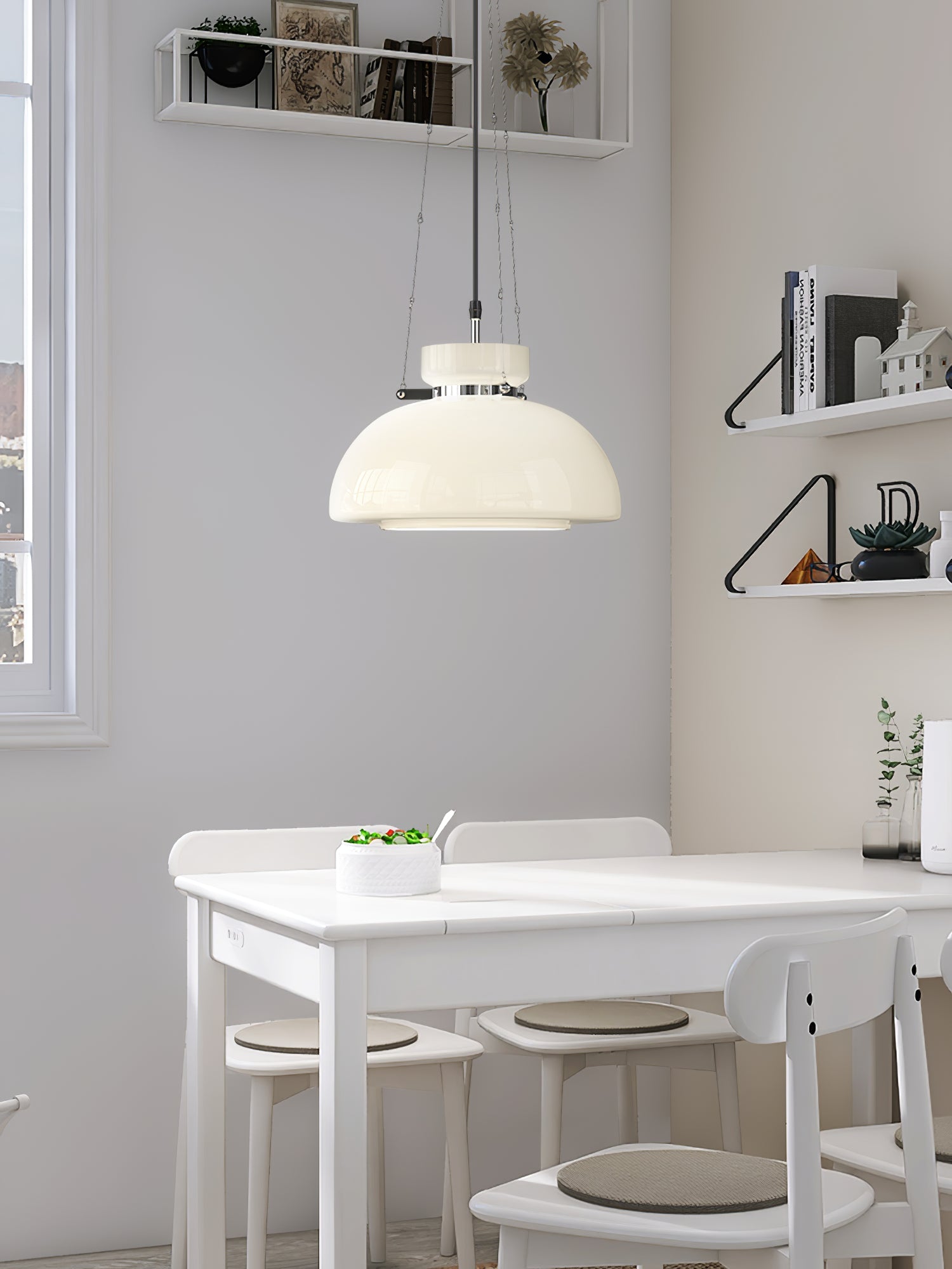 Mack Pendant Light tuo teolliseen tyyliin eleganttia, runollista tunnelmaa. Tässä modernissa mutta klassisessa riipusdesignissa on valkoinen lasivarjostin, joka luo pehmeän, lämpimän tunnelman. Täydellinen rannikko- tai kaupunkiestetiikkaan.
