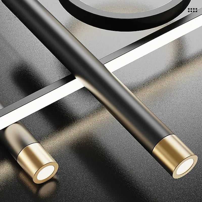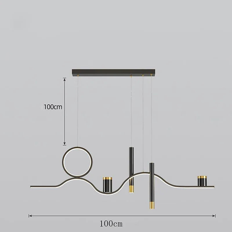 - Tämä musta riippuvalaisin käyttää viivaa ja ympyrää ilmaisemaan suunnittelijan vapaata kulkua, mikä luo mukavan elämäntavan ja toteuttaa modernia tyyliä.