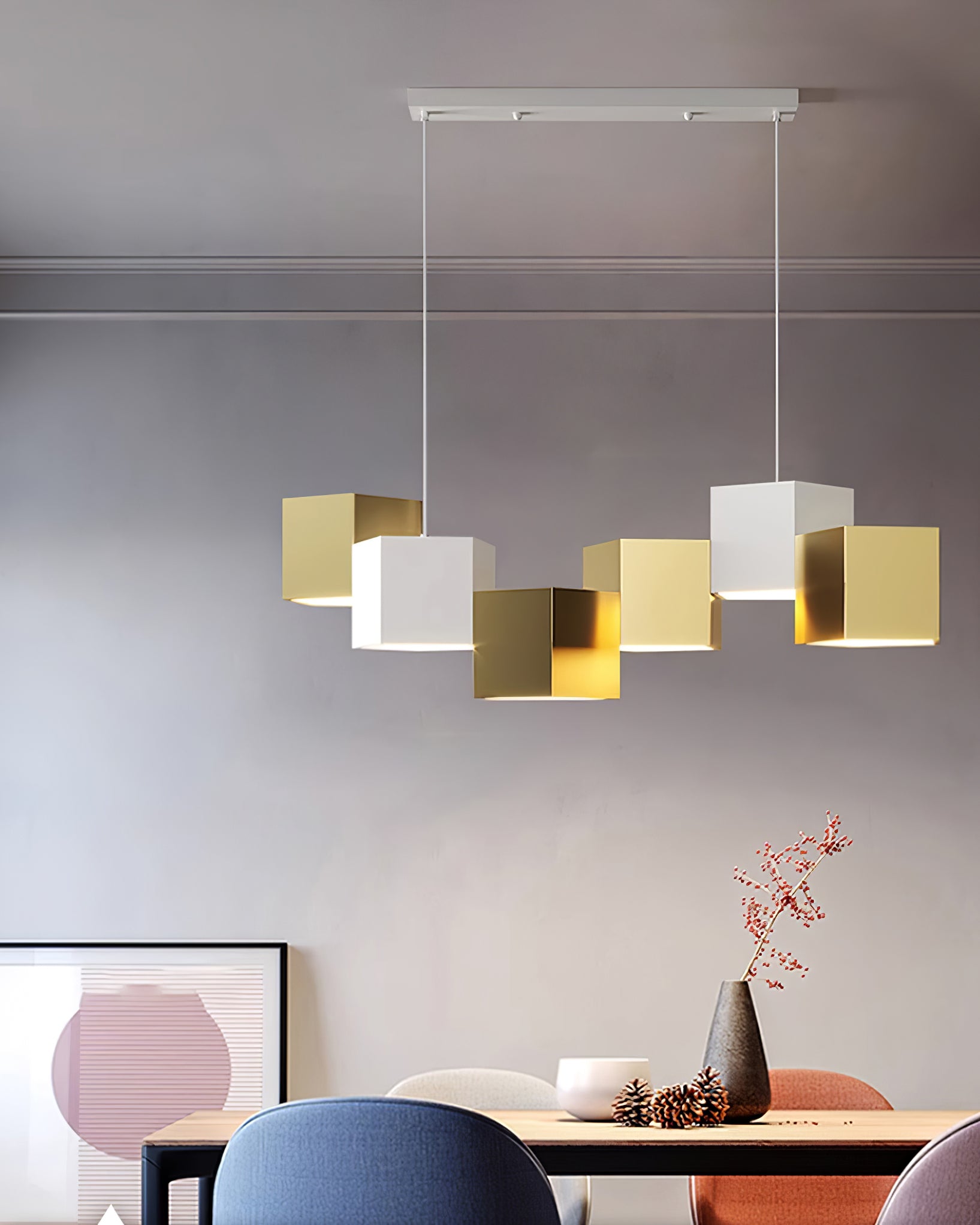 Magic Cube -riippuvalaisin on moderni, minimalistinen ja hienostunut valaistusratkaisu kodin sisustukseen. Siinä on rohkea geometrinen muoto, joka korostaa ja korostaa mitä tahansa asuintilaa ja tuo kotiisi taiteellisuuden ja hienostuneisuuden tunteen. Valaisin luo ylellisen tunnelman elegantilla ja tyylikkäällä muotoilullaan, mikä tekee kodistasi tilan ylelliseen rentoutumiseen.