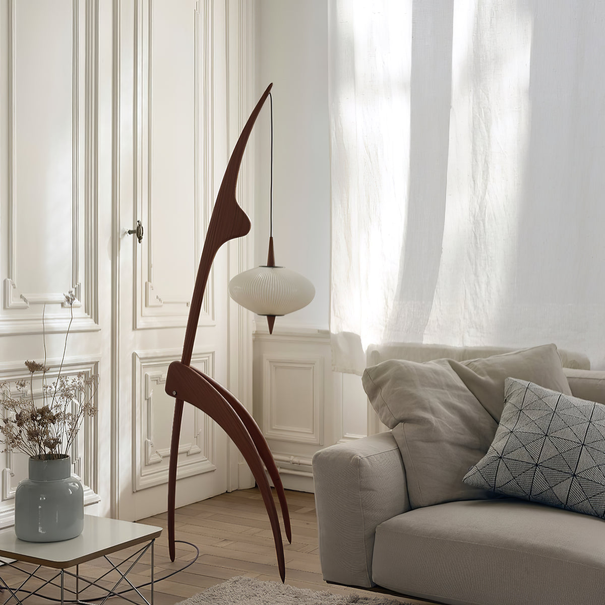 Koe taiteellisen loiston ruumiillistuma Mantis-puulattiavalaisimella. Sen rohkea, abstrakti muotoilu ja vertaansa vailla oleva kauneus tekevät upeasta ilmeestä missä tahansa tilassa. Tämä ikoninen lamppu on todellinen mestariteos, joka on suunniteltu hienosti korostamaan sisustustasi ja vangitsemaan aistisi.