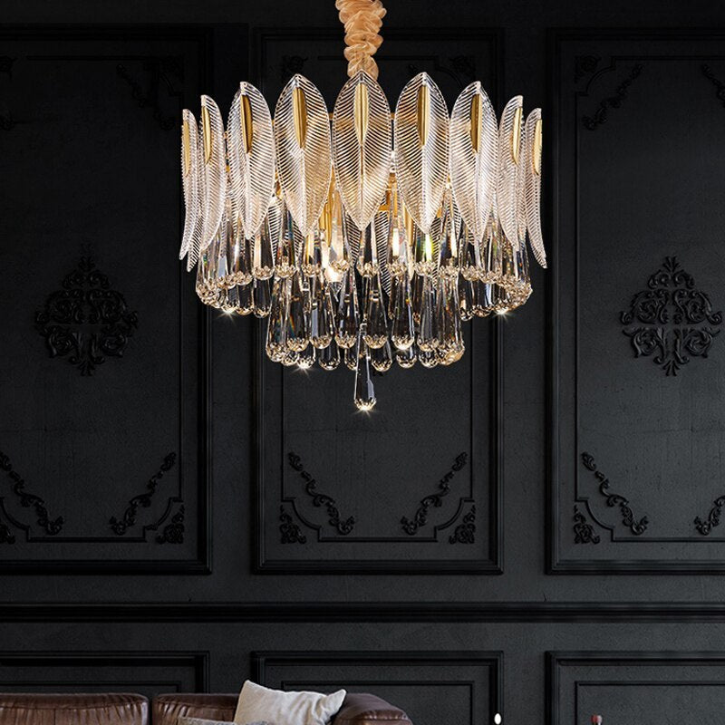 Marilyn Luxury Feather Crystal -kattokruunu, olohuone