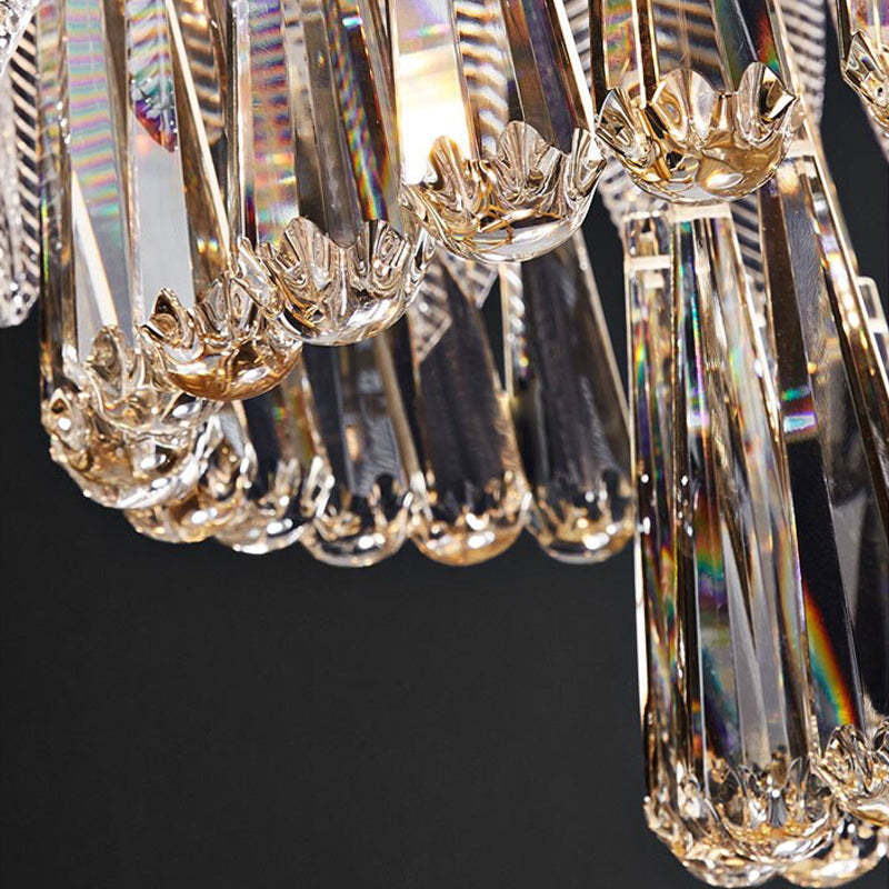 - Tämä kattokruunu on hienosti muotoiltu kristallilla, ja se huokuu loistoa ja lisää tilaan ylellisyyttä.