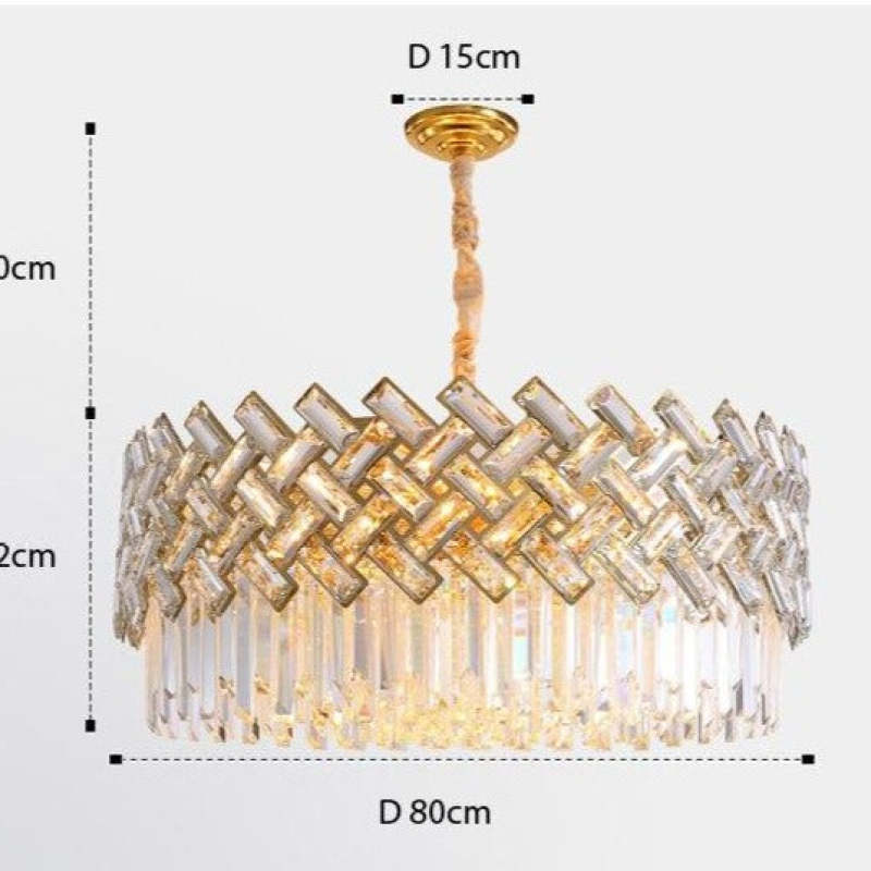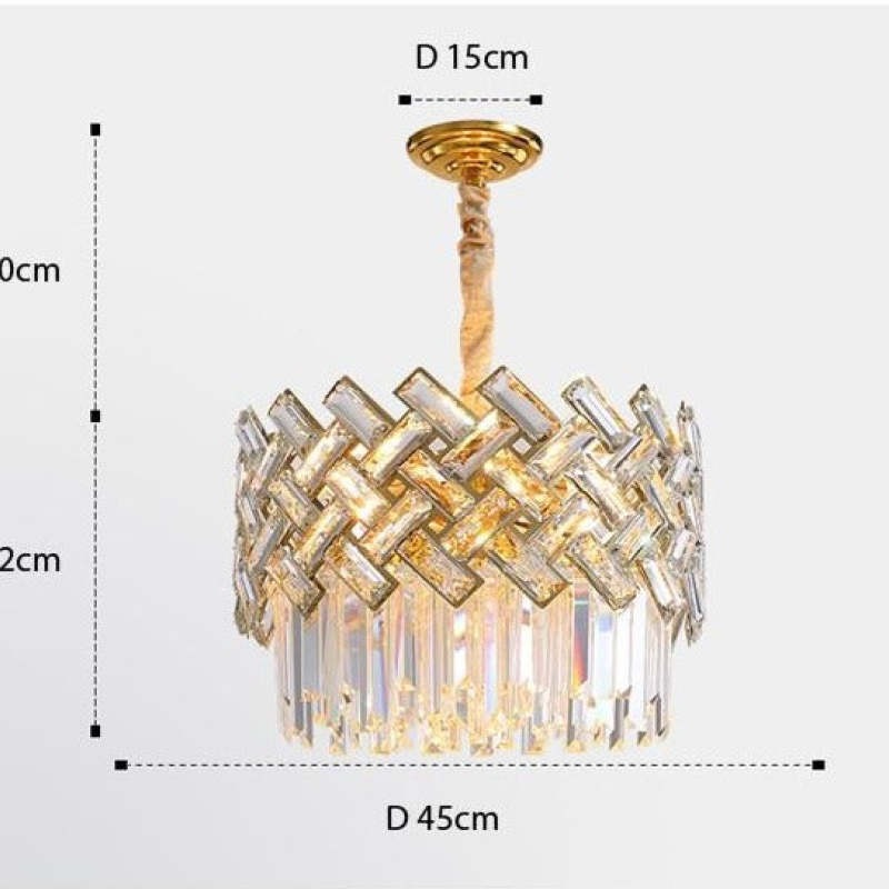 - kristallikruunu on kaikki käsintehtyjä, konekiillotettuja timantti K9-kiteitä, jokainen kristalli on hienosäädetty ja valittu, sileä ja vapaa epäpuhtauksista, valaisimen päärunko on kullattu ja runko on herkkä, laatu on parempi jalo ja tyylikäs.