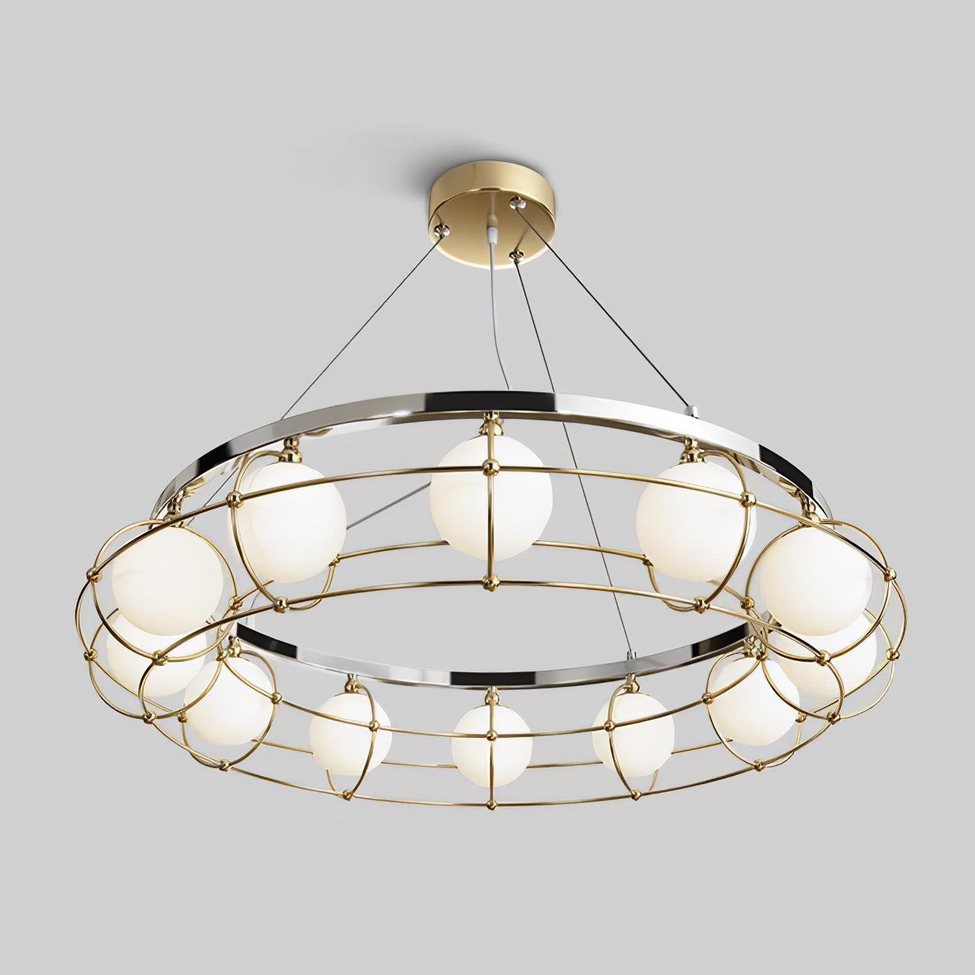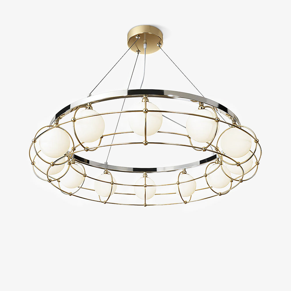 Maytonin pyöreä kattokruunu on näyttävä design-kappale kotiisi. Se on valmistettu teollisuusvaikutteisesta valkoisesta lasivarjostimesta, johon on upotettu suuri pyöreä reunus valon vangitsemiseksi. Piristä asuintilasi tällä modernilla ja ajattomalla kalusteella.