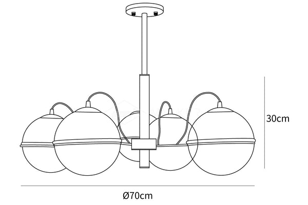 Tämä eksklusiivinen McCarren-kattokruunu, jonka uskotaan olevan myymälämme alkuperäisen suunnittelun, sopii moderniin, eklektisen inspiraation saaneeseen sisustukseen. Maitomaiset pallomaiset diffuusorit suupuhalletuissa lasitalon E27-kantoissa, lamppujen häikäisy säteilee tasaisesti ympäristöön ja korostaa metallirungon lämmintä sävyä.