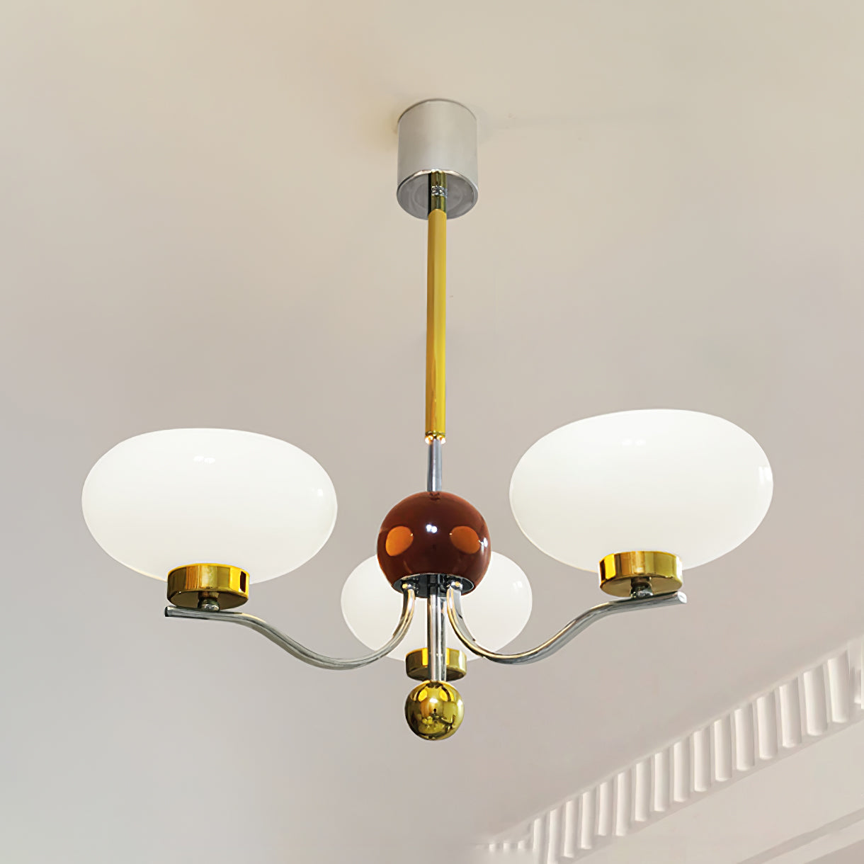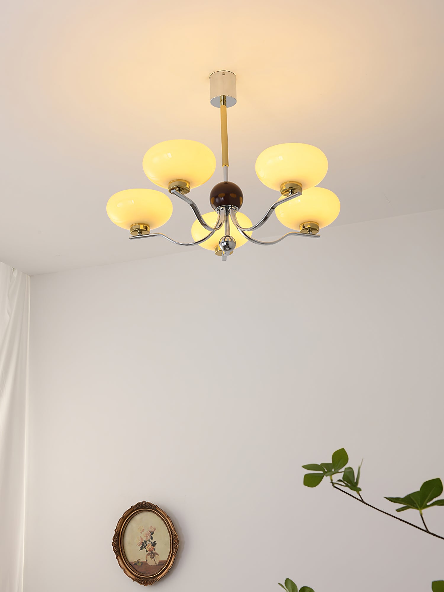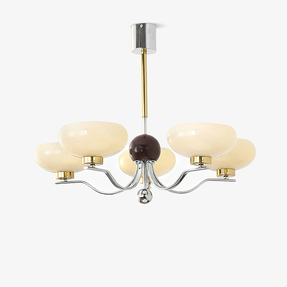 Tässä keskiaikaisessa kulhokruunussa on kaunis maidonvalkoinen ja keltainen kulhomainen lasivarjostin. Se on upea valaisin, joka lisää tyylikkään mutta maalaismaisen silauksen mihin tahansa sisustukseen.