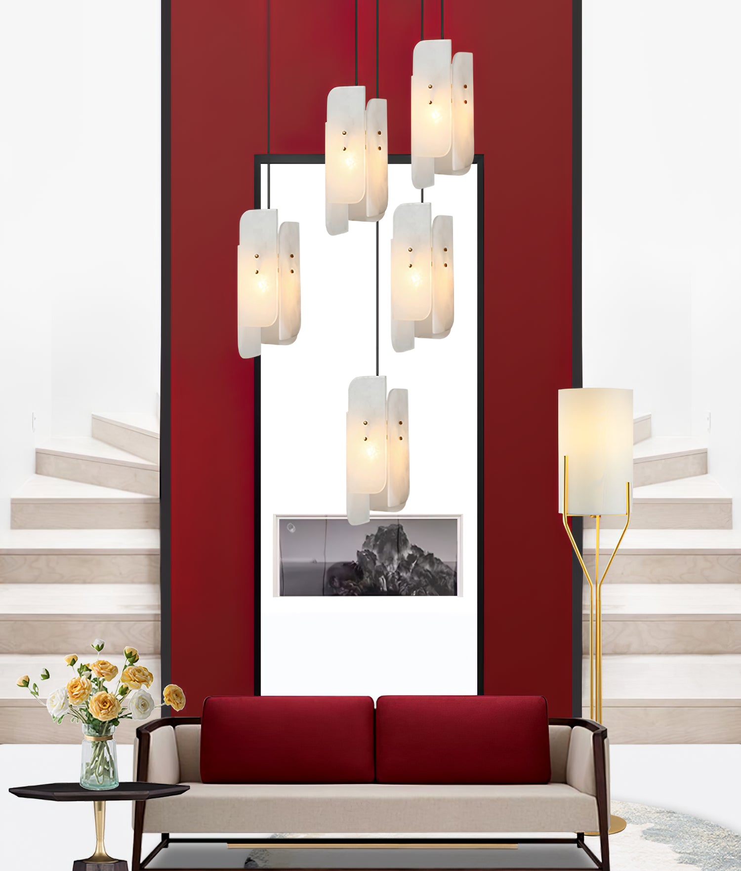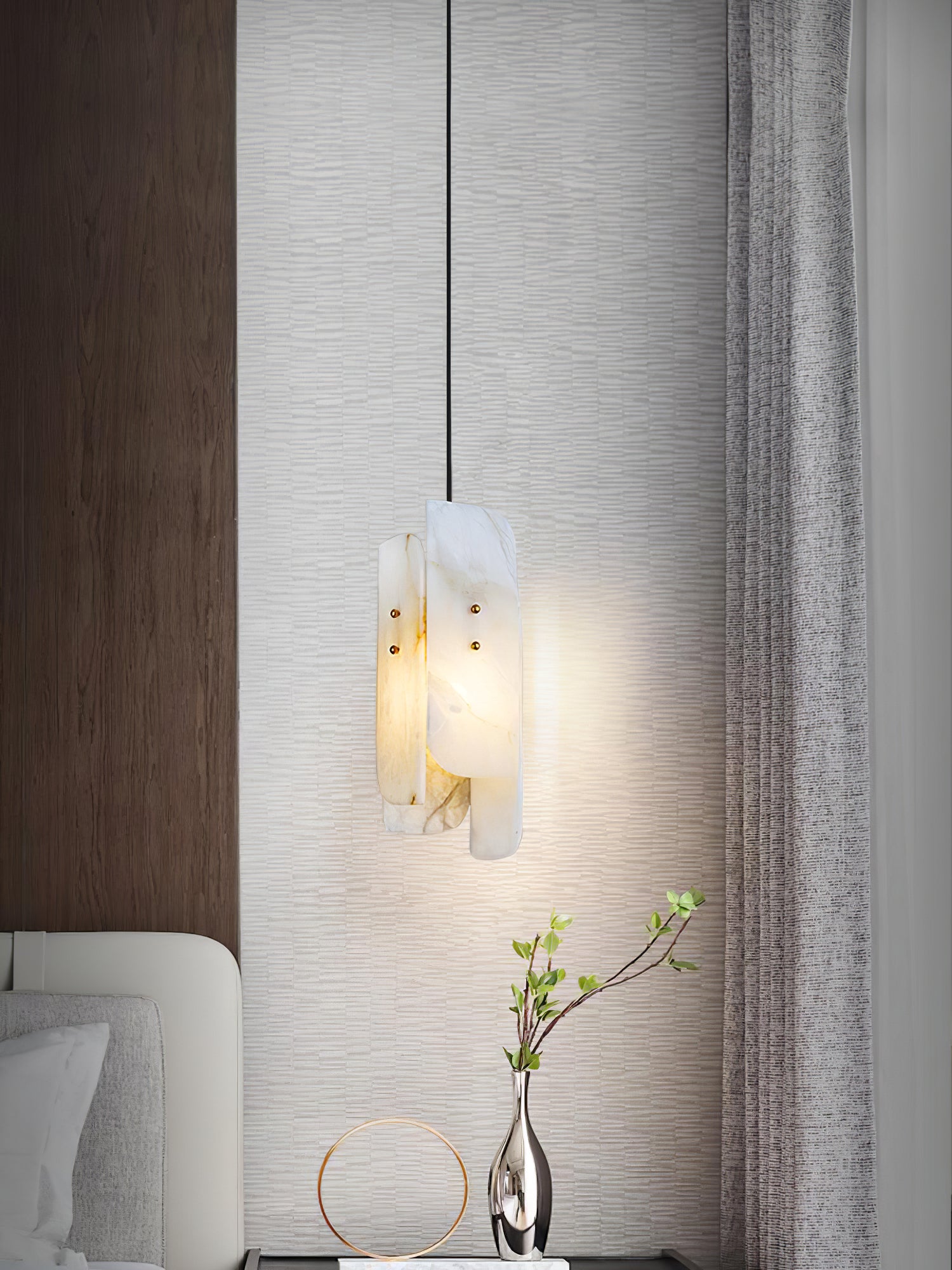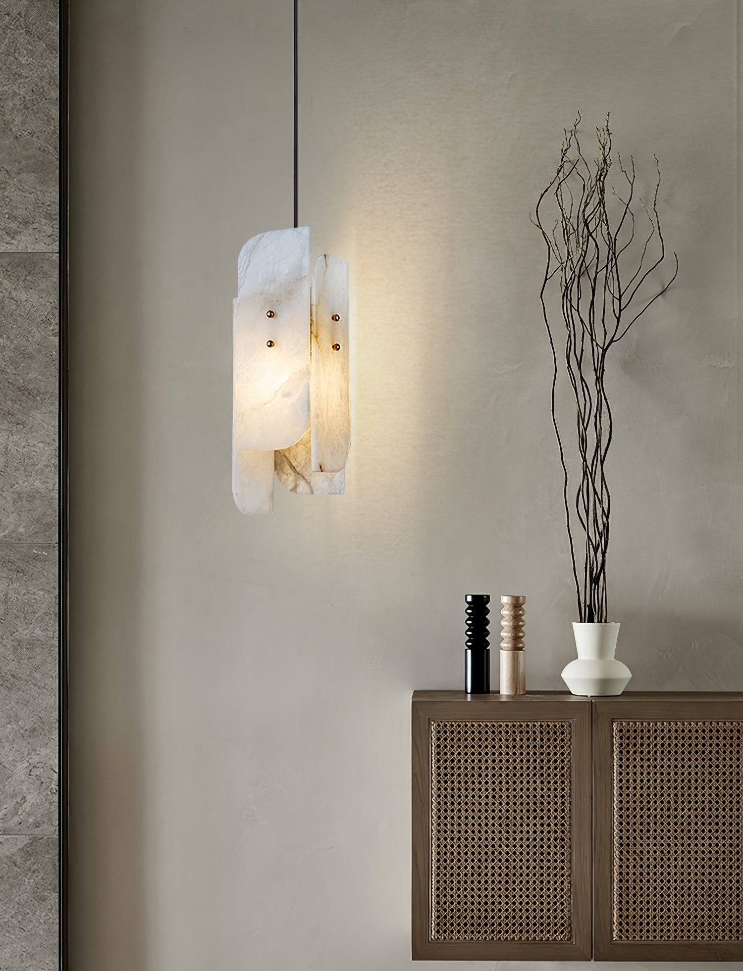 Alabasterikokoelma jäljittelee luonnossa esiintyviä kiteisiä muodostumia. Käsin leikkaavat alabasterivarjostimet ripustetaan messinkipinnoitetuista lentokonekaapeleista, herkistä messinkitangoista ja käsin muotoilluista messinkilaitteistoista.