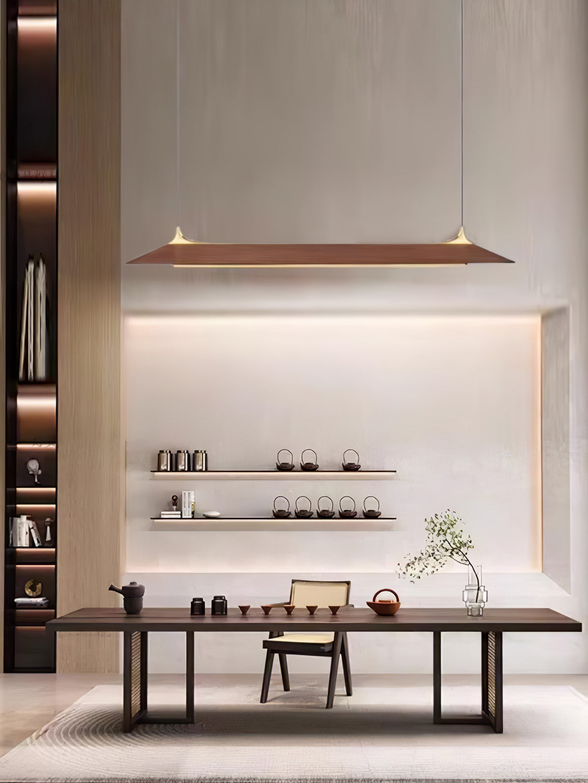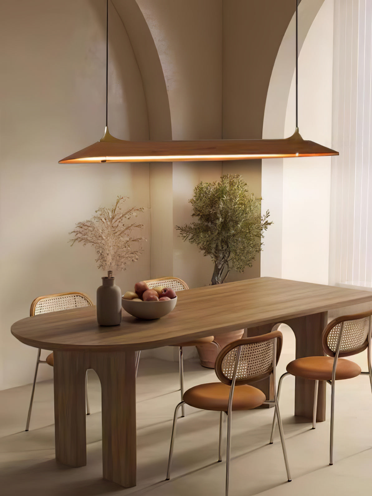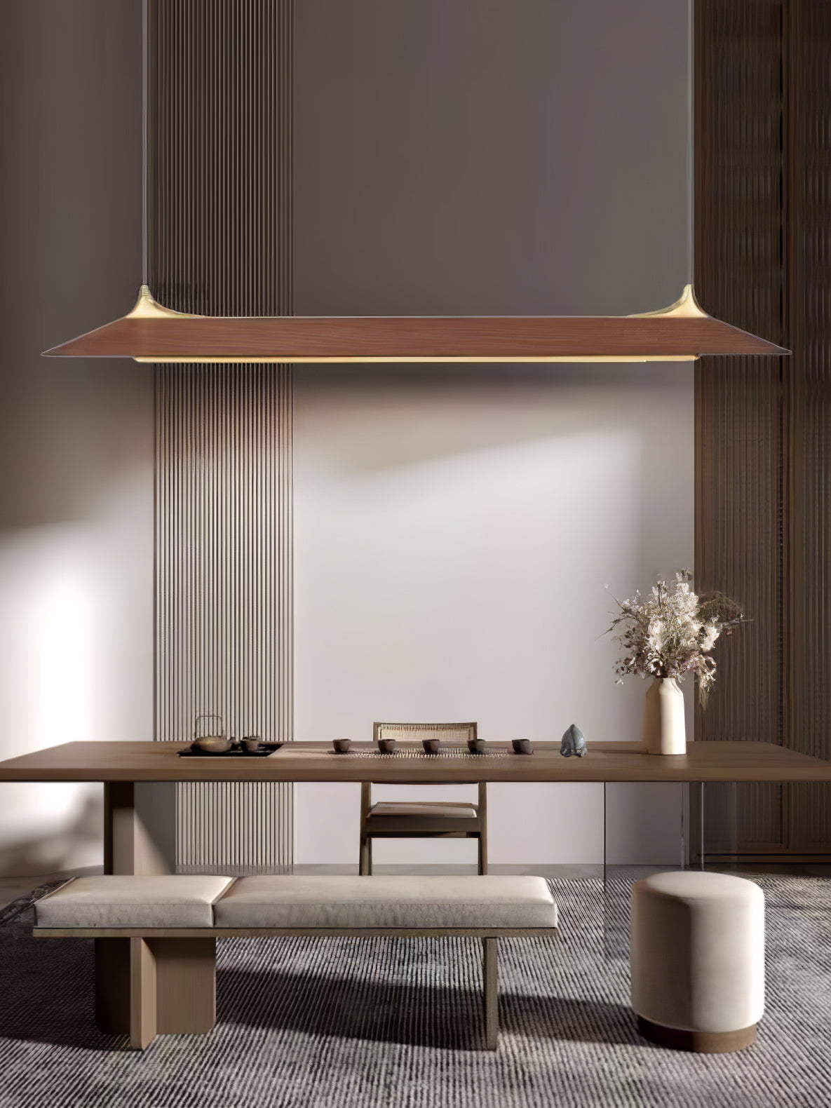 Mernoen puinen kattokruunu on valmistettu yhdestä puukappaleesta, joka on leikattu säilyttämään sen luonnolliset syyt ja käsitelty mehiläisvahalla ylellisen viimeistelyn saavuttamiseksi. Sen lampunvarjostin on edelleen hiottu ja käsitelty terävän ja vankan tekstuurin aikaansaamiseksi. Liittimet jyrsitään massiivimessingistä ja sitten hiotaan ja kiillotetaan puuta täydentävän heijastuksen luomiseksi. Tämä käsintehty kappale takaa erottuvan ja ajattoman ilmeen mihin tahansa huoneeseen.