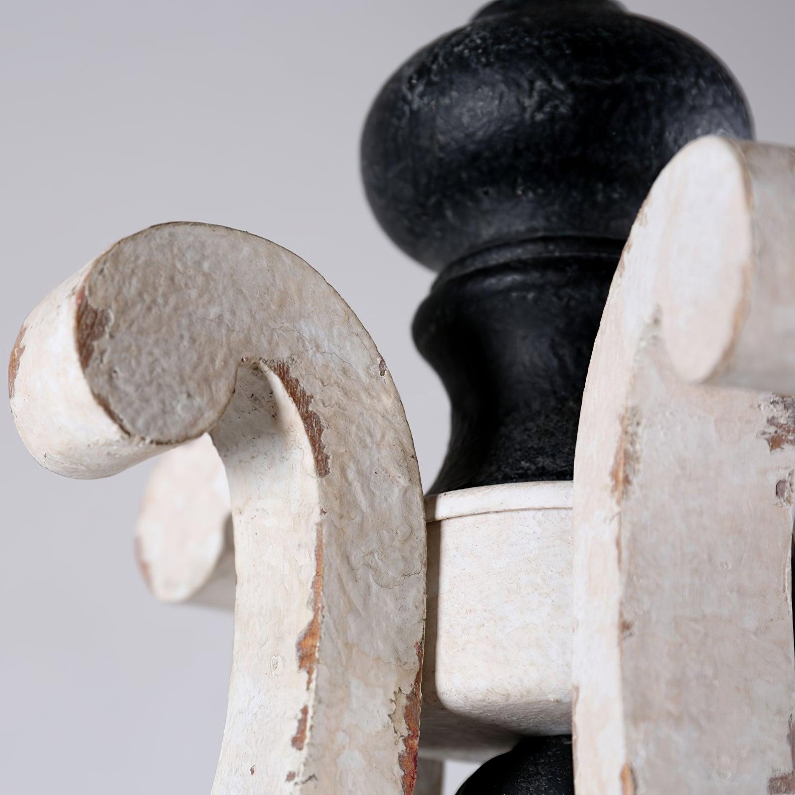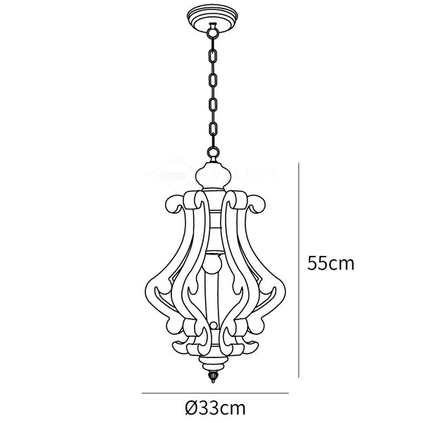 Kierretyt puuvarret, rasittu metalli ja kynttiläholkit luovat tämän tyylikkään mökkikappaleen maalaismaisen ilmeen. Paljas polttimo ja mattamusta ketju luovat kontrastin, joka lisää tämän valaisimen tyyliä.