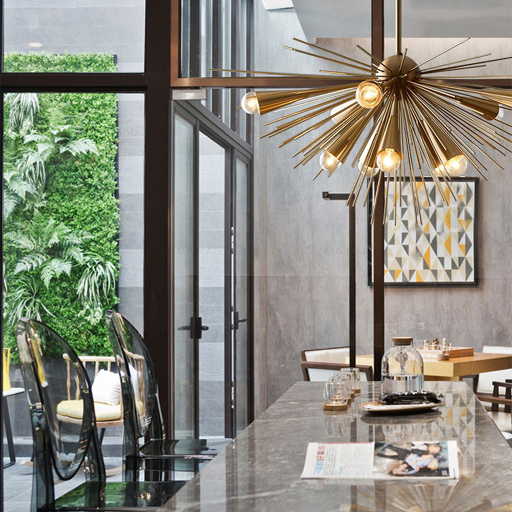 Mid Century kultainen kattokruunu olohuoneeseen