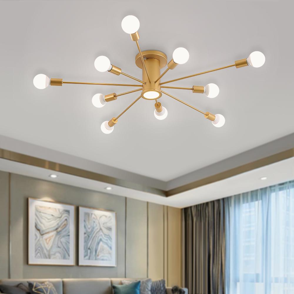 Yksi + kymmenen valoa • Sputnik-suunnittelu • E26/E27-keskikantaiset polttimot (ei sisälly) + mukana LED • Kiinteä • UL-/CE-listattu