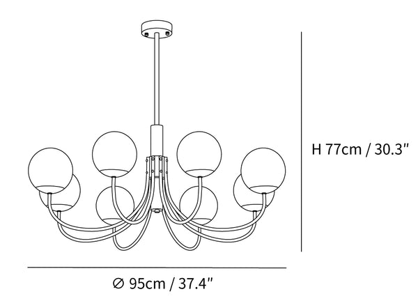8 päätä Koko: Halkaisija 95 cm x K 77 cm / ∅ 37,4" x K 30,3"