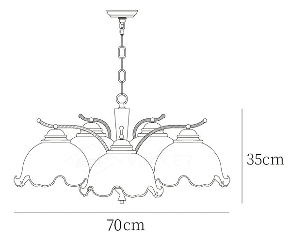 Moderni päivitys klassiseen kattokruunuun, tämä on katseenvangitsija valaistuksen keskipiste, joka varmasti herättää ihailua. Kattokruunussa on silmiinpistävä kukkavarjostin. alaspäin kaartuva lampun runko — tämä kattokruunu on tyylikäs valinta olohuoneeseen tai olohuoneeseen.
