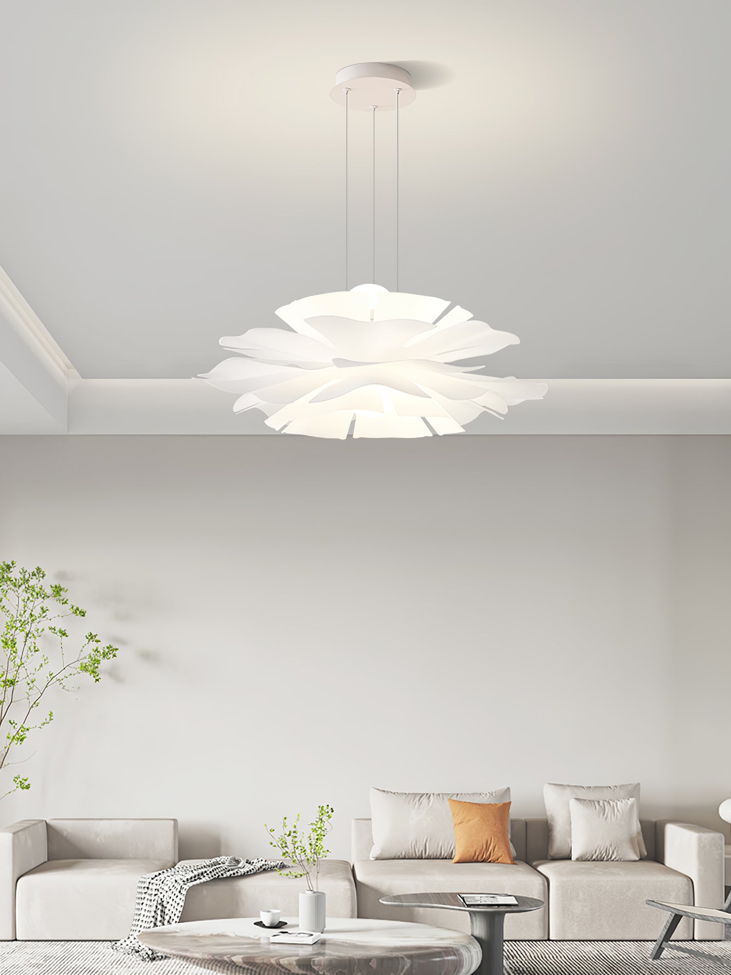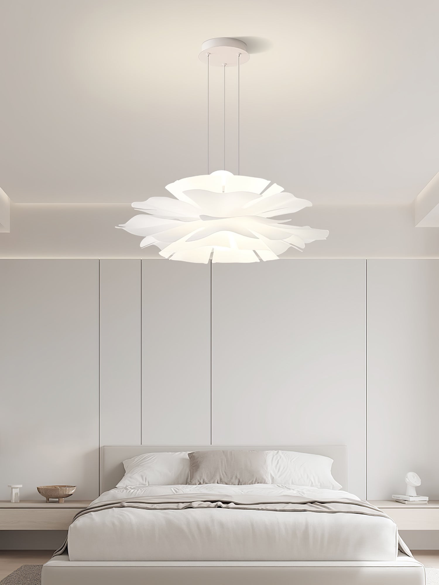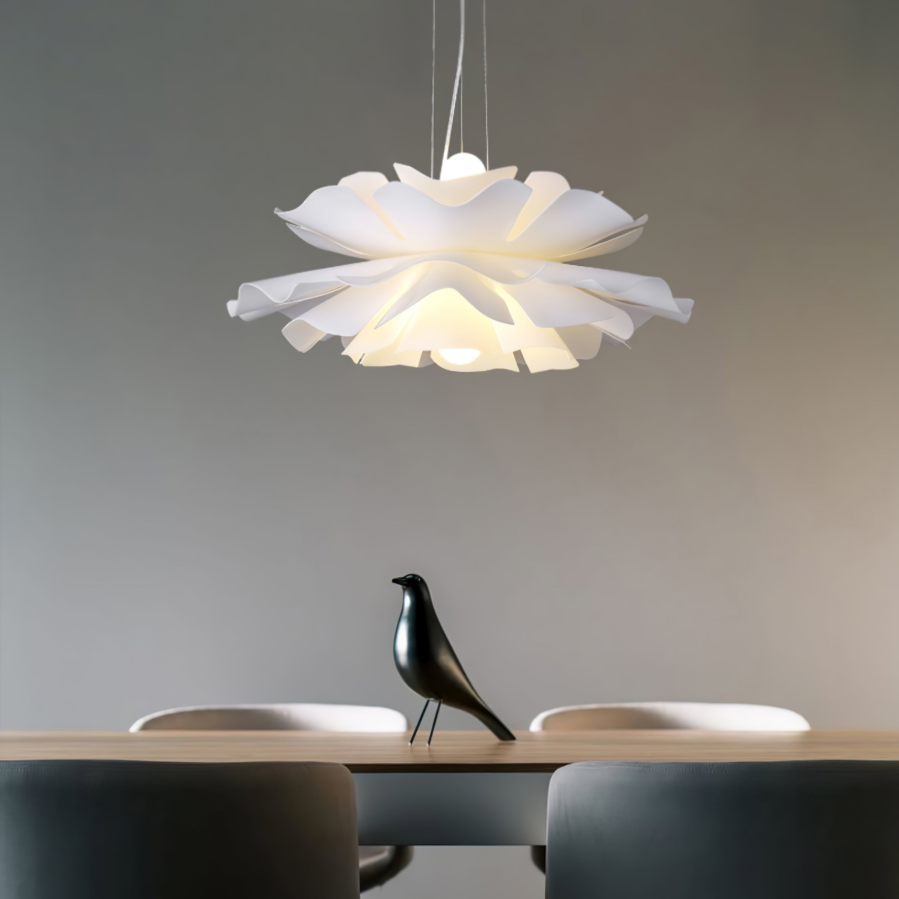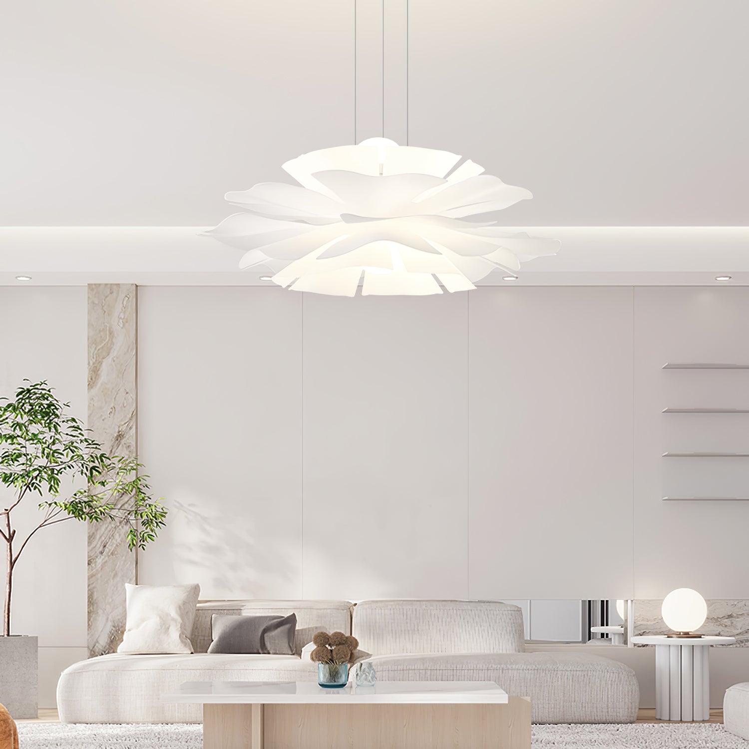 Lotus Flower -riippuvalaisin kiinnittää huomiosi välittömästi lootusmaisella muodollaan ja kiehtovalla muotoilullaan. Sen lämmin valkoinen viimeistely luo rauhoittavan tunnelman, kuin taivaalla kelluva pilvi. Täydellinen mihin tahansa moderniin asuintilaan.