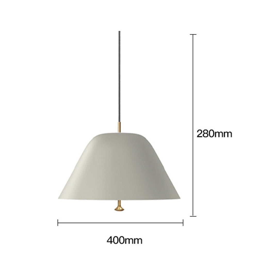 Tämä riippuvalaisin on valmistettu korkealaatuisesta metallista, ja siinä on yksinkertainen mutta tyylikäs muotoilu, joka lisää hienostuneisuutta mihin tahansa huoneeseen. Sen kartion muotoinen varjostin suuntaa valon alaspäin luoden keskittyneen ja tunnelmallisen hehkun, joka on täydellinen korostusvalaistukseen olohuoneessa, makuuhuoneessa tai ruokailutilassa. Minimalistisen muotoilunsa ja monipuolisen tyylinsä ansiosta tämä riippuvalaisin nostaa varmasti kodin sisustuksen ilmettä.