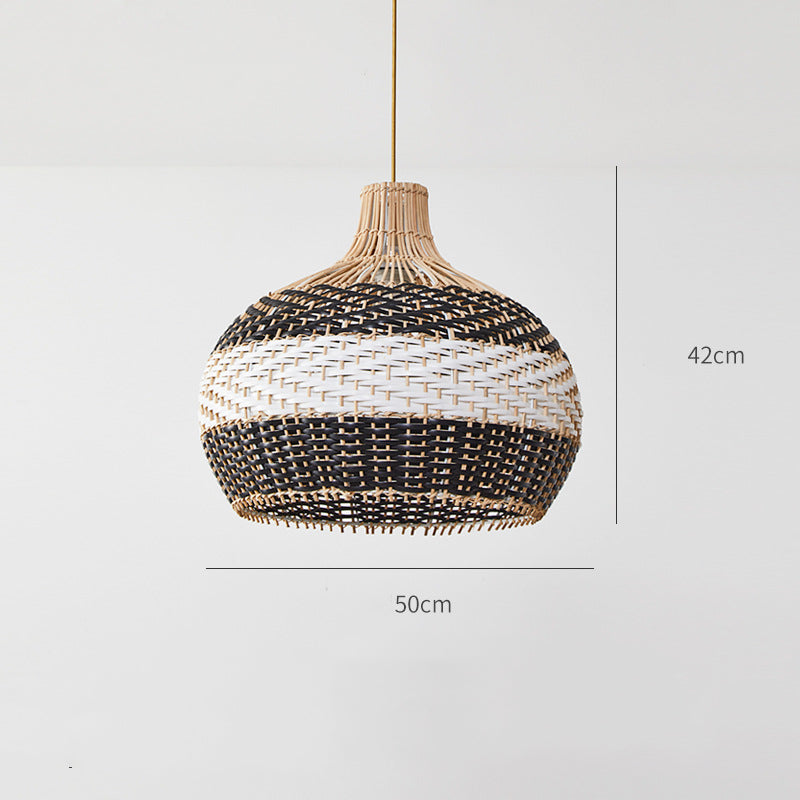 Minimalistinen mustavalkoinen lampunvarjostin rottinki-riippuvalaisin
