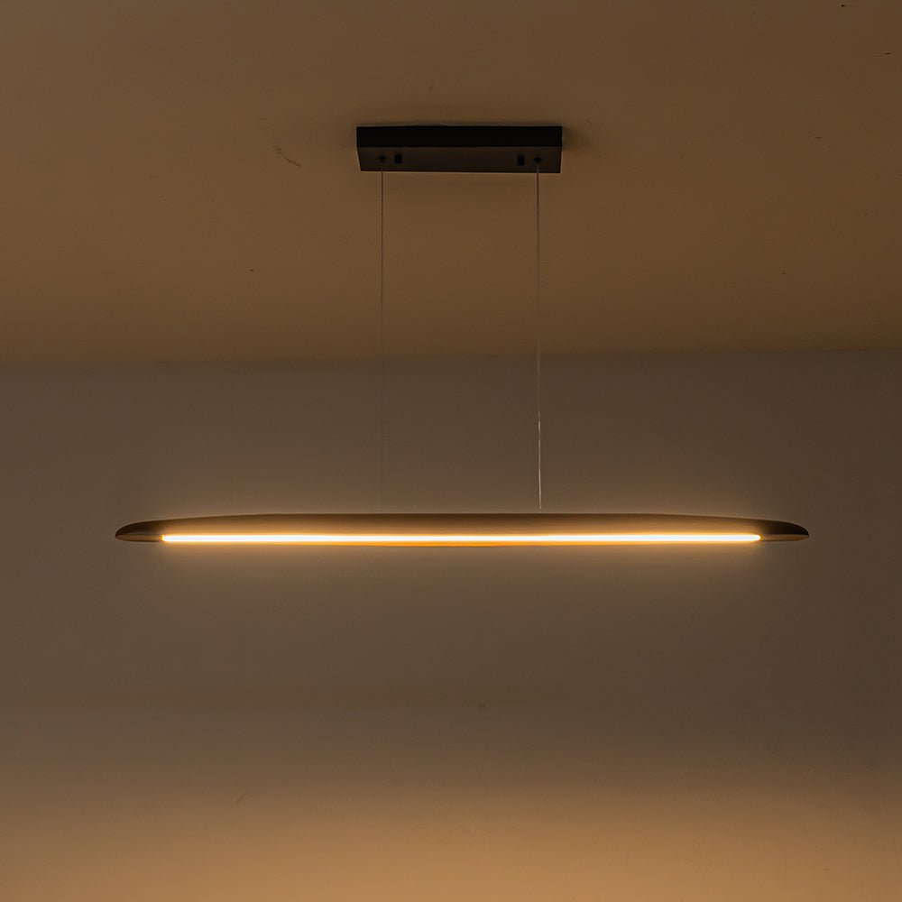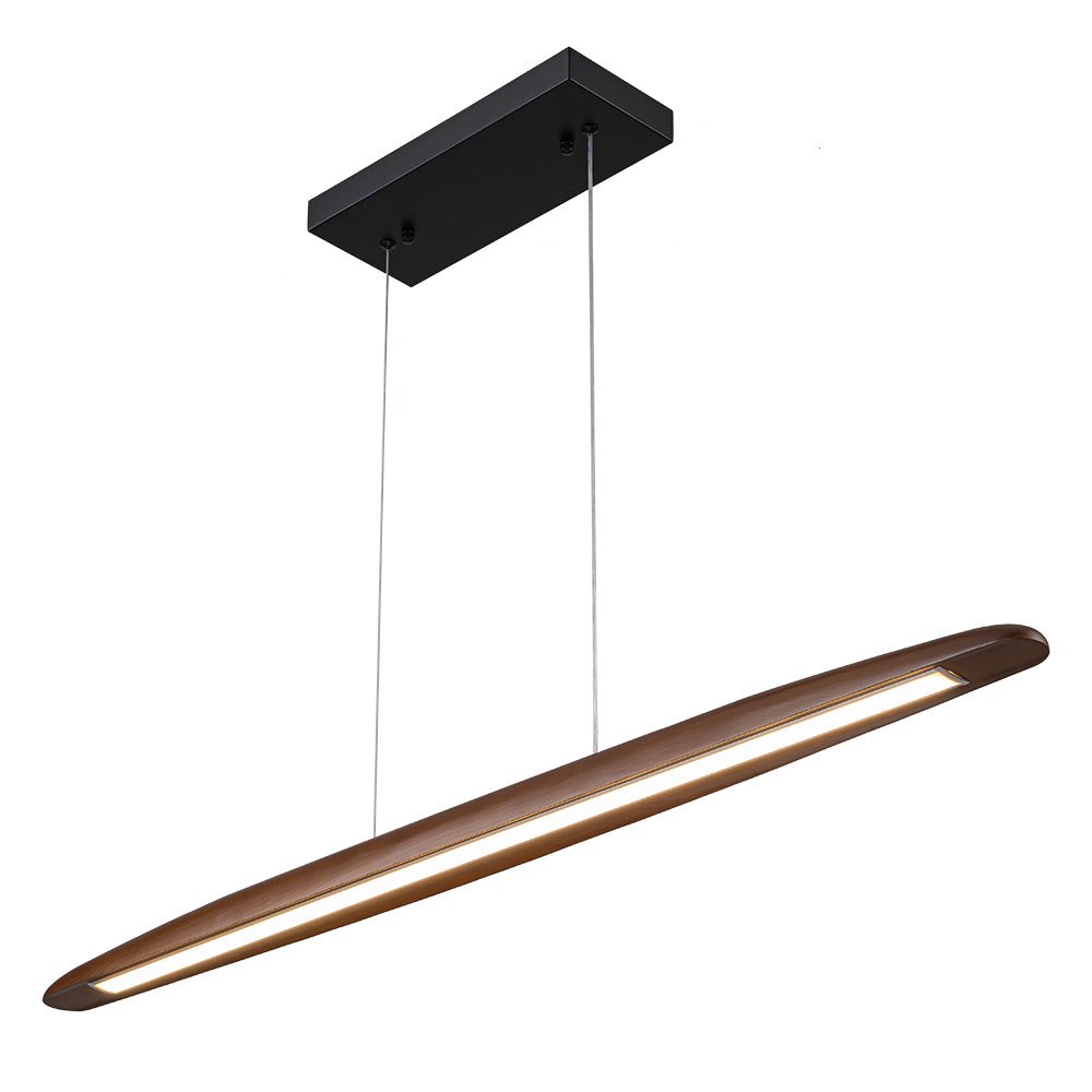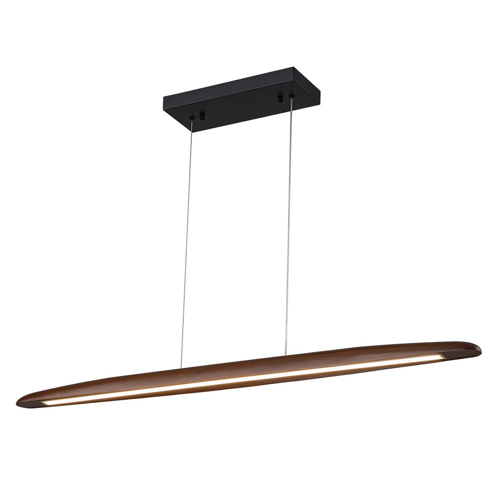 Taitava yhdistelmä modernia maalaistaloa ja skandinaavista tyyliä on viimeinen sana tässä leveässä LED-riippuvalaisimessa. Tässä tummasta pähkinäpuusta valmistetussa minimalistisessa LED-keittiön saaririipusessa on tyylikäs pitkä soikea lineaarinen riipus hieman kaarevilla reunoilla. Sisäänrakennetun 3000K LED-moduulin ansiosta tämä puinen lineaarinen saarekekruunu valaisee lämpimän ja tehokkaan työvalaistuksen alaspäin, mikä on täydellinen valaisemaan ruokasalia, keittiösaareketta, toimistoa tai olohuonetta. Himmennettävän ominaisuuden avulla voit säätää kirkkautta joustavasti, mikä tarjoaa toiminnallista mukavuutta.Tiedot