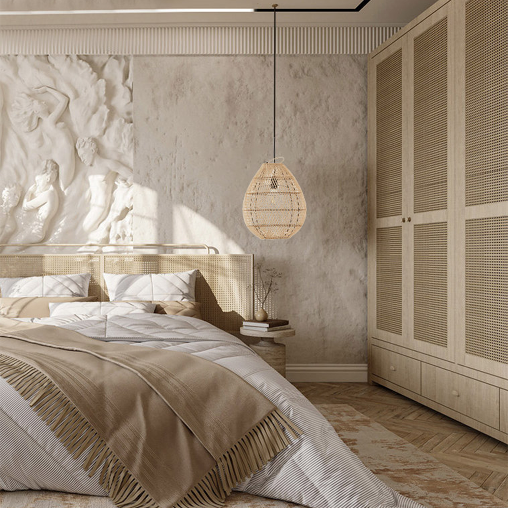 Minimalistinen vintage rottinki keittiön riippuvalaisin