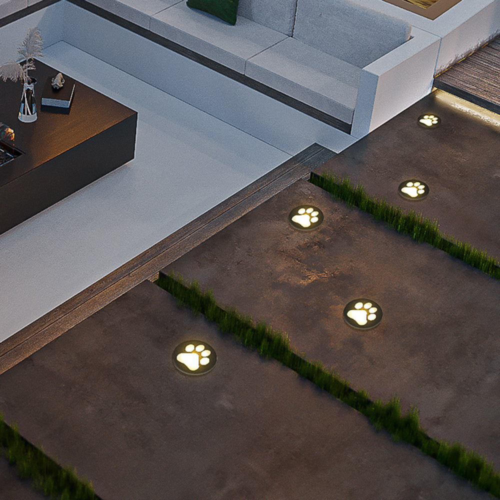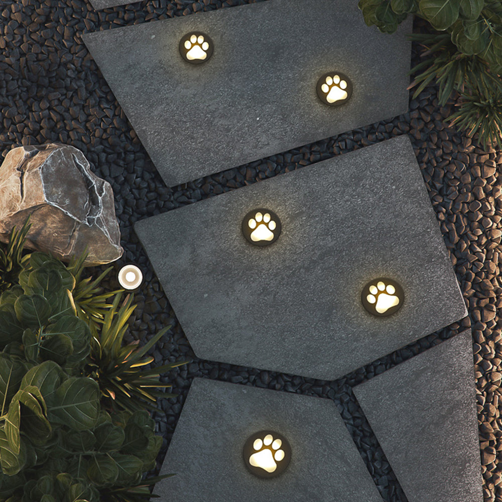 - Lekkon muotoinen lampunvarjostin on koristeltu kauniilla kissan tassukuvioilla, jotka on upotettu näppärästi maahan, mikä lisää puutarhaan hauskuutta ja lämpöä.