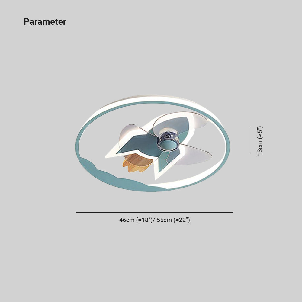 Minori Rocket Shape 2-lamppuinen kattotuuletin valolla, 5 väriä, 18"/22"