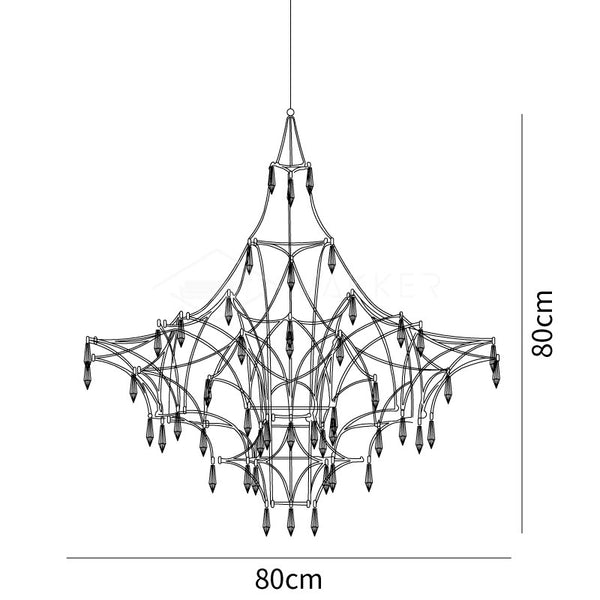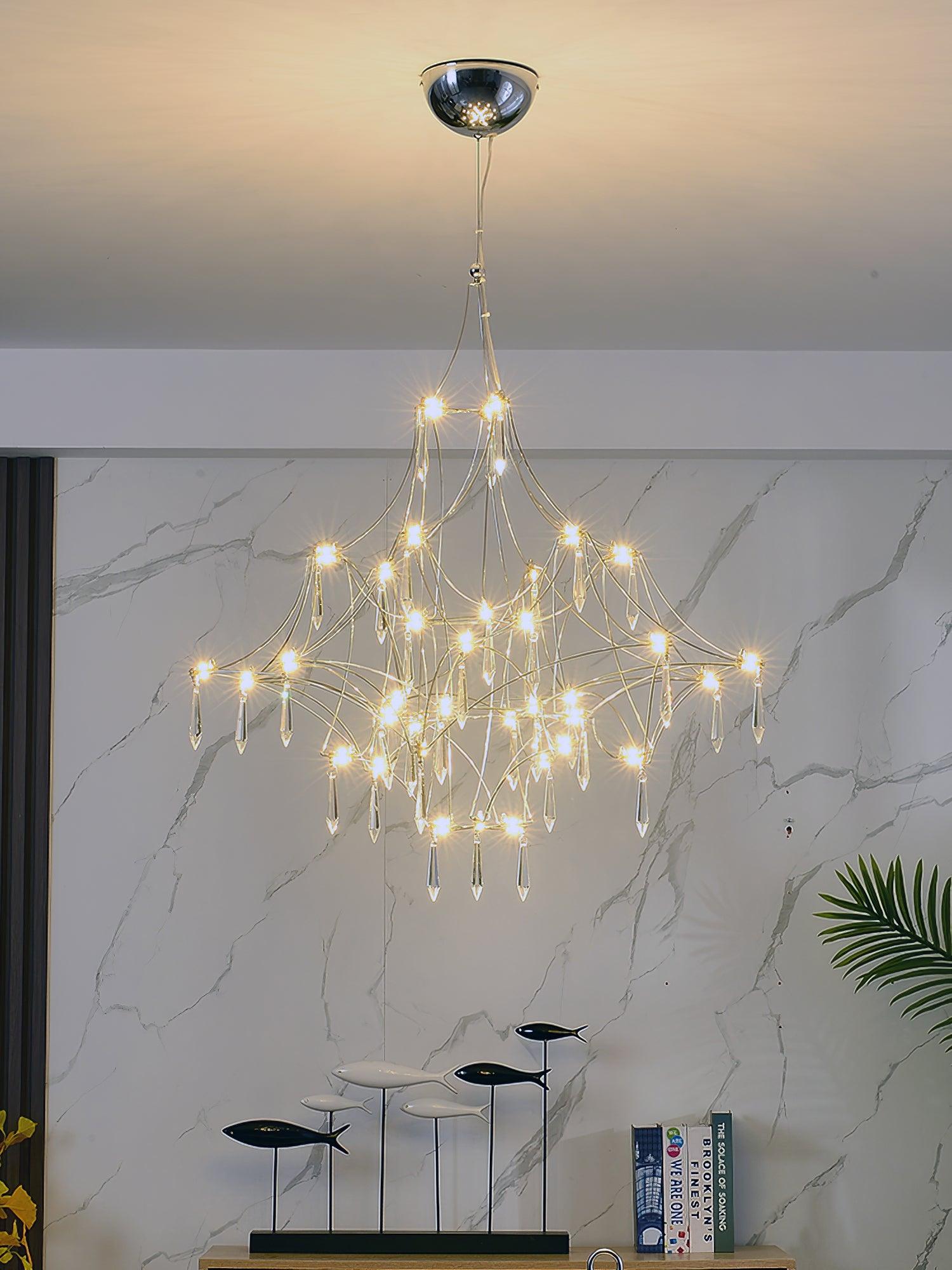 Valomeri pienistä tähdistä. Suunnitteilla tämä valaisin on valmistettu kestävästä ruostumattomasta teräksestä ja kristallista. Valitut materiaalit saavat tämän valaisimen näyttämään kevyeltä verkolta huolimatta siitä, että se on kestävä ja kestävä. Taidokkaasti käytetyt kiteet rikkovat ja heijastavat lukuisten pienten valaisinten valoa luoden kiehtovan valon leikin.