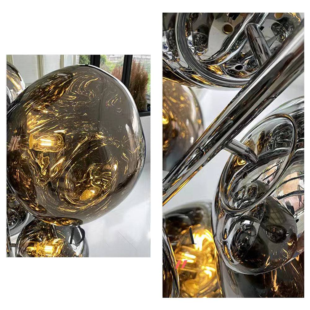 - Sen ainutlaatuinen muotoilu sisältää useita epäsäännöllisen muotoisia palloja, jotka luovat lumoavia valo- ja varjoefektejä valaistuna.