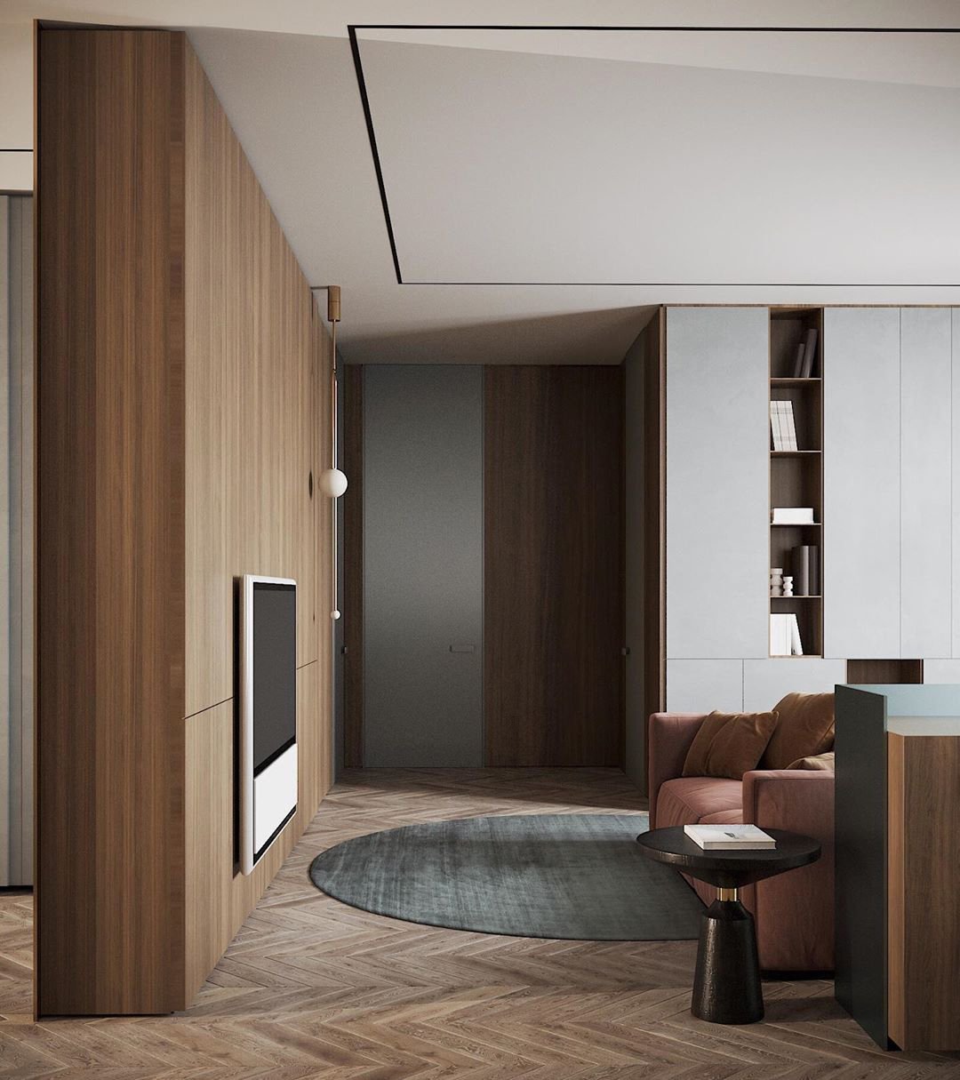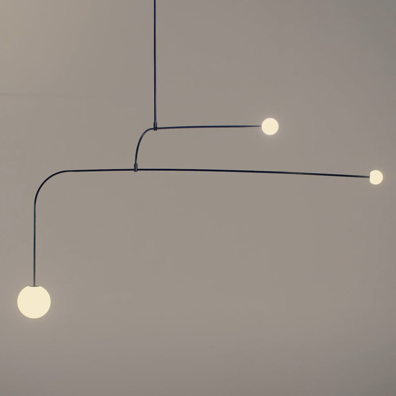 Tämä valaistus paljastaa minimalistisen muotoilun, jossa on erittäin graafiset ja selkeät muodot. Näissä ilmassa olevissa linjoissa on useita lämpimän valon lähteitä, ja diffuusorit ovat opaalipuhallettua lasia.