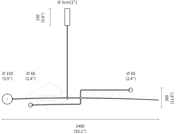 Mobile Kattokruunu 3: P 140 cm x K 30 cm / P 55,1″ x K 11,8″ (G4 AC 120V )