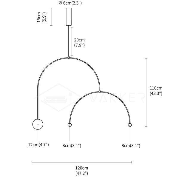 Mobile kattokruunu 9 koko: P 80 cm x K 45 cm / P 31,5" x K 17,7"