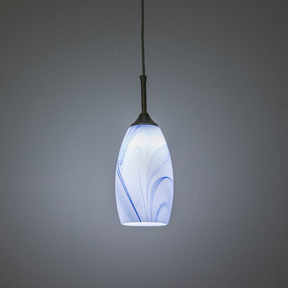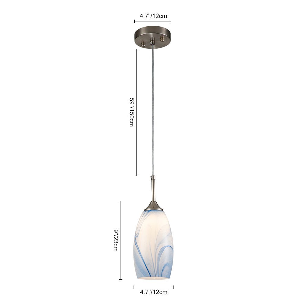Lisää tilaan hienostuneisuutta yhdellä lasivalaisimellamme. Tässä yhden valon keittiön riippuvalaisimessa on soikea kiillelasin sävy koristeellisella kivikuviolla, joka on joko sininen tai harmaa. Se tarjoaa ylellisen ja eksklusiivisen muotoilun, joka erottuu joukosta missä tahansa. Tämä lasikiille-riippuvalaisin, johon mahtuu yksi keskikantainen E26-polttimo (ei sisälly toimitukseen), valaisee työvalaistuksen alaspäin, joten se sopii täydellisesti ripustukseen yksin kompaktissa oleskelutilassa tai useiden valojen yhdistämiseen keittiösaarekkeen tai ruokapöydän valaisemiseksi.Tiedot
