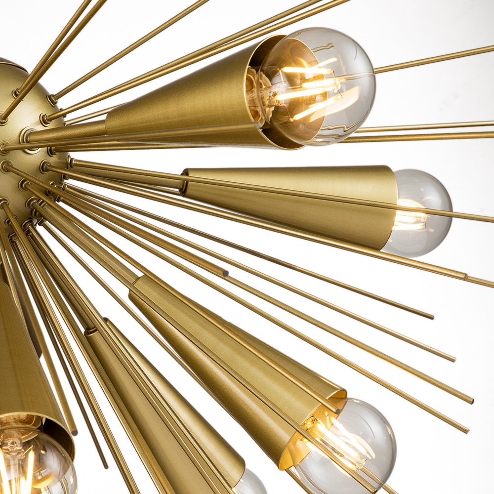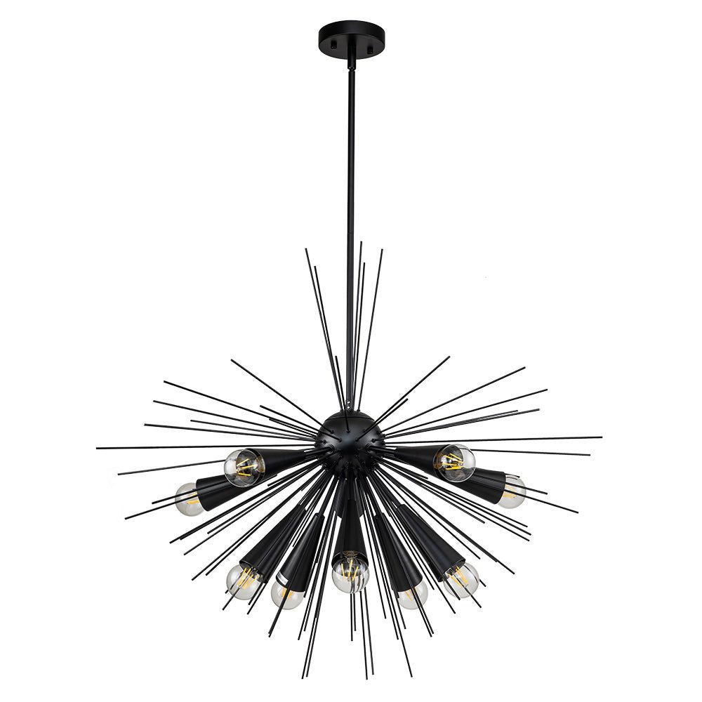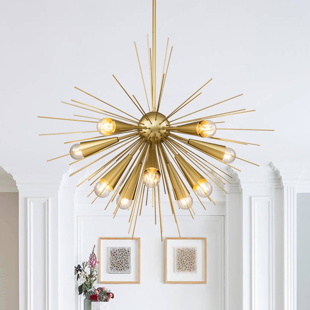 Kymmenen valaisinta • Sunburst-muotoilu • Moderni vuosisadan puoliväli • Kulta/musta viimeistely • E26 Keskikantaiset polttimot (ei sisälly) • Kiinteä • UL-listattu