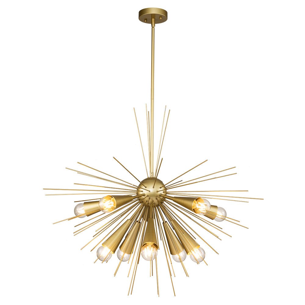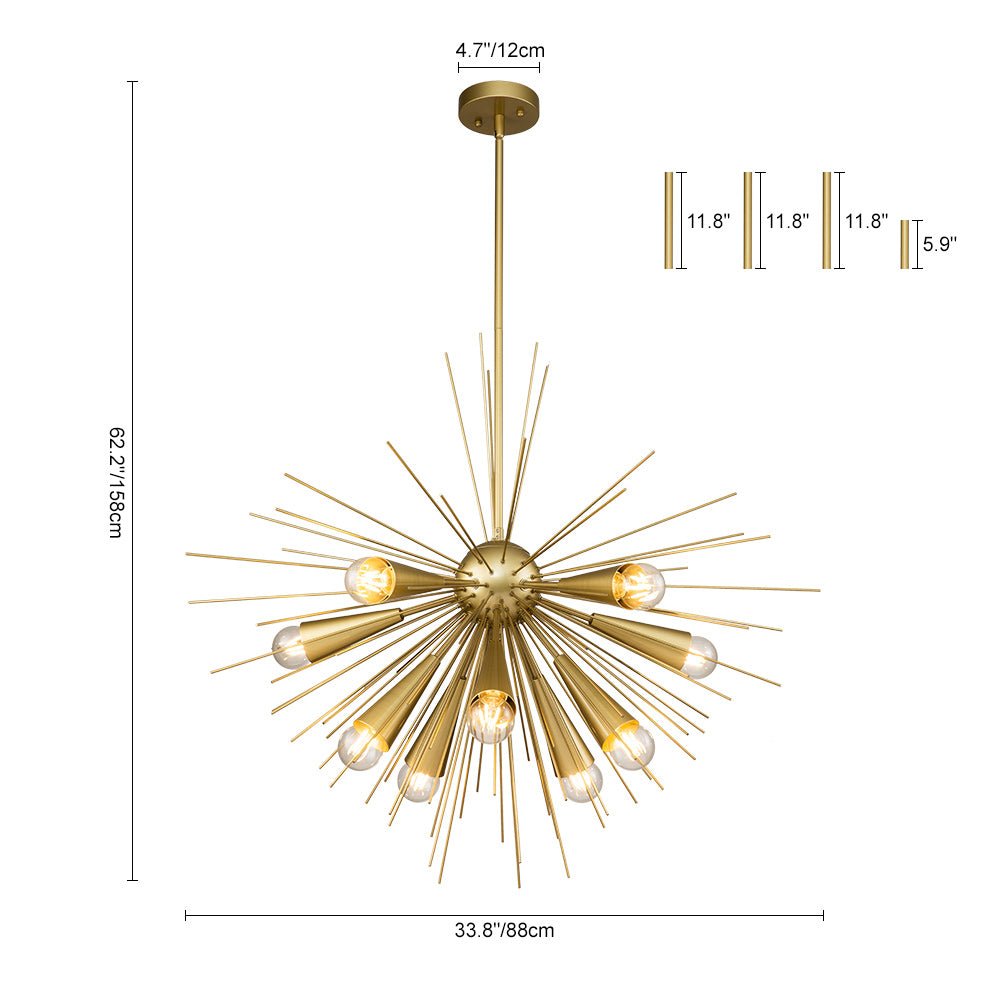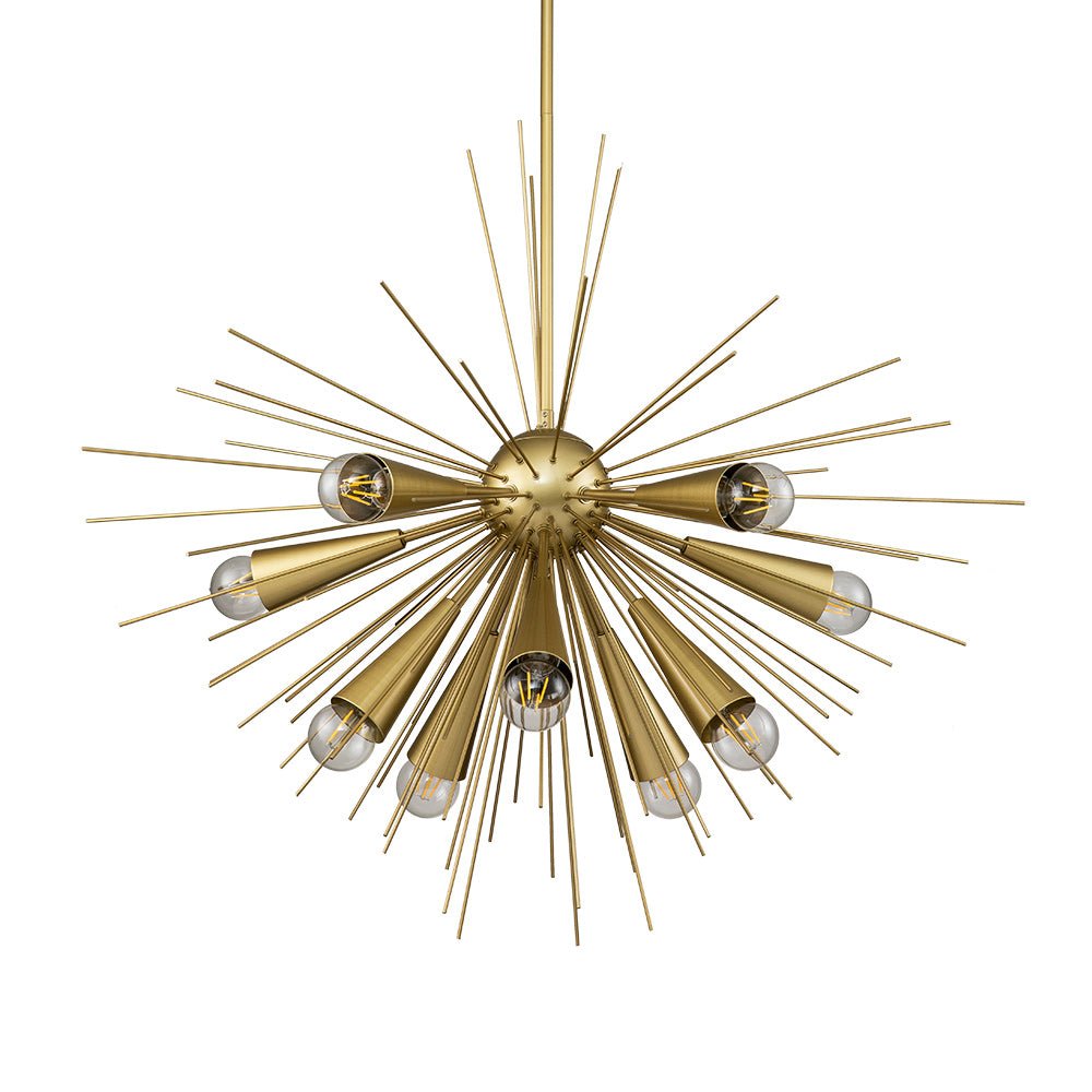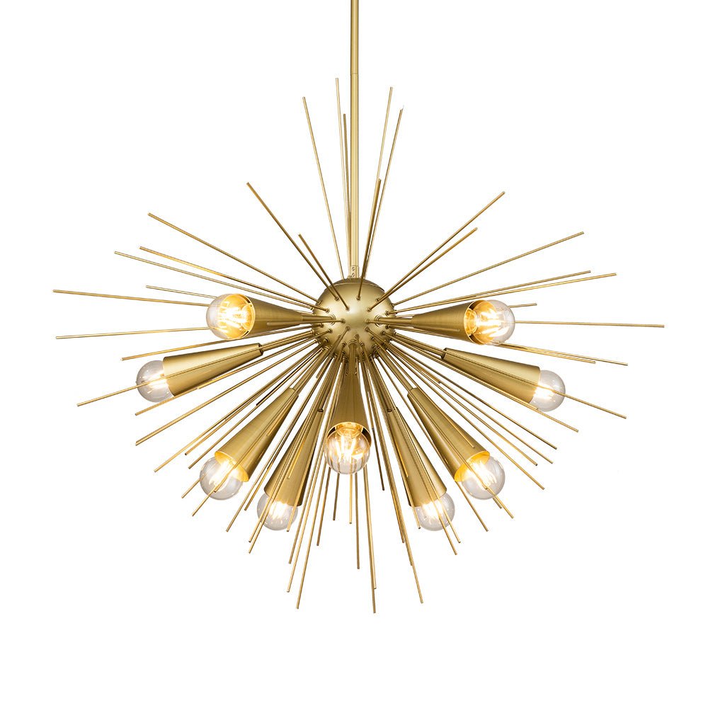 Kymmenen valaisinta • Sunburst-muotoilu • Moderni vuosisadan puoliväli • Kulta/musta viimeistely • E26 Keskikantaiset polttimot (ei sisälly) • Kiinteä • UL-listattu