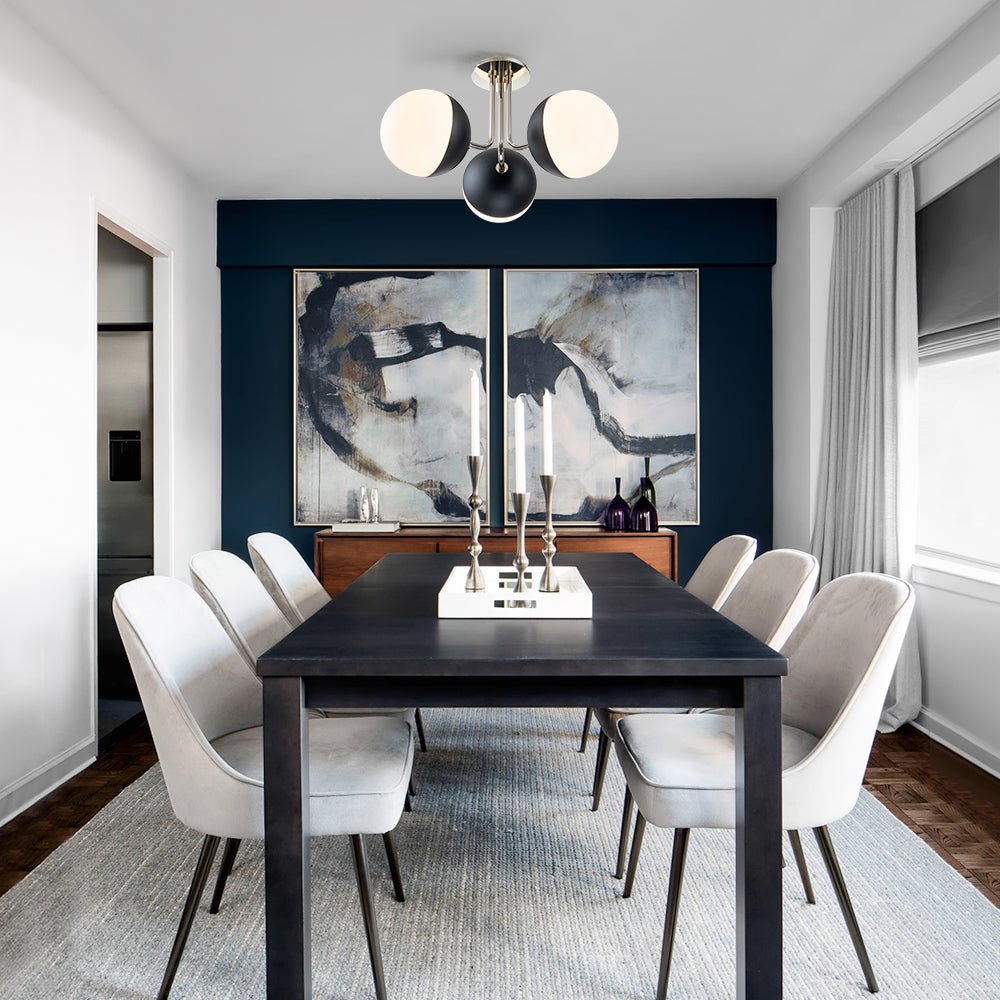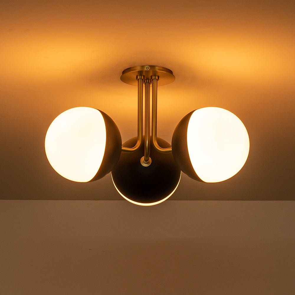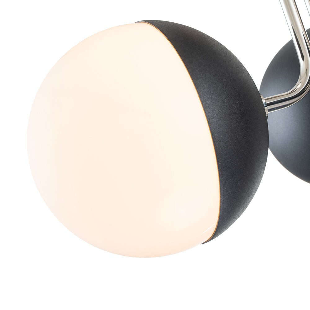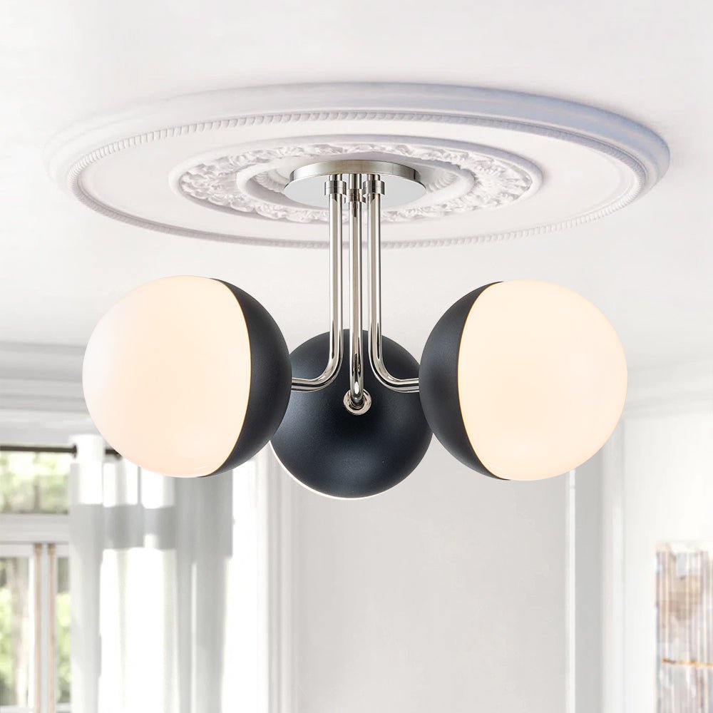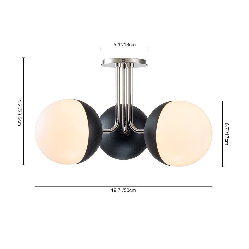 Tässä puolitasossa asennettavassa sputnik-valaisimessa on kolme pallomaista lasivarjostetta, joita tukee kaareva 3-varreinen runko. Makeat opaalilasipallot törmäävät satiinimustan kupolin kantaan luoden klassista ajatonta estetiikkaa, joka viihdyttää silmiäsi. Tämä kodikkaalla ja pehmeällä hehkullaan ja elegantilla tyylikkäällä siluettillaan ylpeilevä vuosisadan puolivälin moderni 5-valoninen maidonvalkoinen lasipallokattovalaisin toimii täydellisenä ympäristön valaistuksena, joka valaisee ja parantaa eteisen, makuuhuoneen, ruokailuhuoneen, olohuoneen ja kylpyhuoneen.