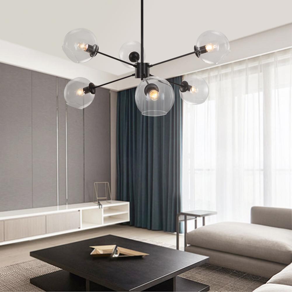 Lisää järjestelyösi komeaa loistoa tällä modernilla maapallon kattokruunulla, joka on saanut inspiraationsa retro-sputnik-designista. Tämä upea musta sputnik-kattokruunu on ripustettu pyöreällä katoksella ja alaspäin suuntautuvalla tangolla, ja se koostuu kuudesta avonaisesta maapallon lasivarjostimesta, jotka sijaitsevat kuudella ohuella varrella erikseen. Tämä moderni 6 valon musta sputnik-kattokruunu mahdollistaa 40 W E26/E27-keskikantopolttimot (ei sisälly toimitukseen), ja se lisää kirkkautta koko huoneeseen. Tämä moderni kattokruunu on yhteensopiva sekä tasaisten että kaltevaiden kattojen kanssa, kun katoksen ja alasauvan välissä on adapteri. Tämä 37 tuuman leveä 6-valoinen sputnik-kattokruunu on täydellinen luomaan olohuoneeseen, ruokailuhuoneeseen tai eteiseen kutsuvaan hehkuun.