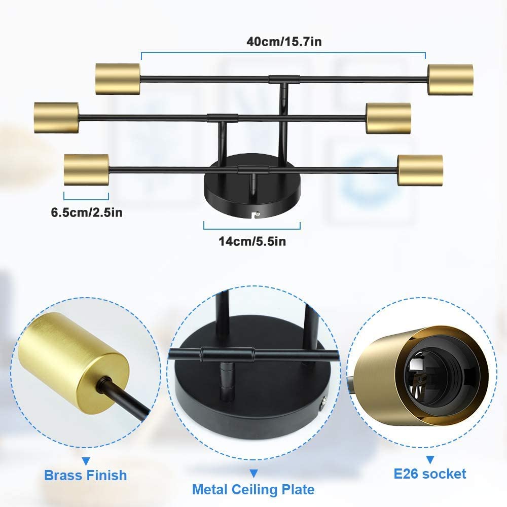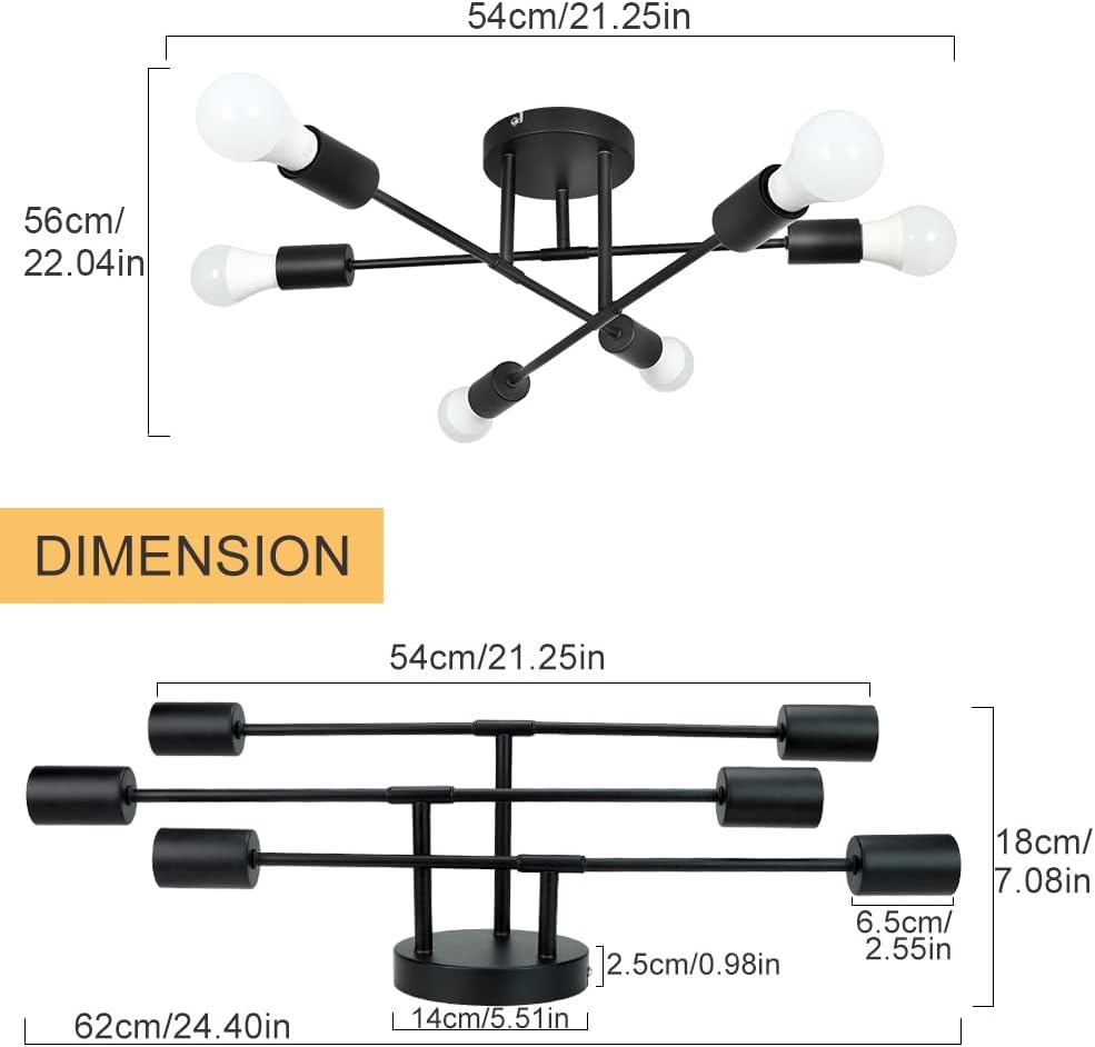 - Helppo asennus: Kaikki 6 haaraa on esijohdotettu ja esikierretty. Kun kokoat lampun, liitä sauva pala palalta asennuspiirustuksen mukaisesti.