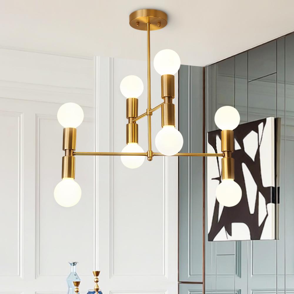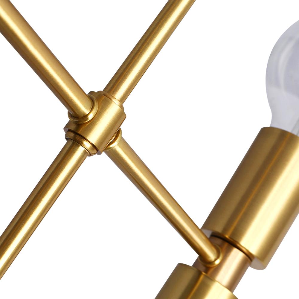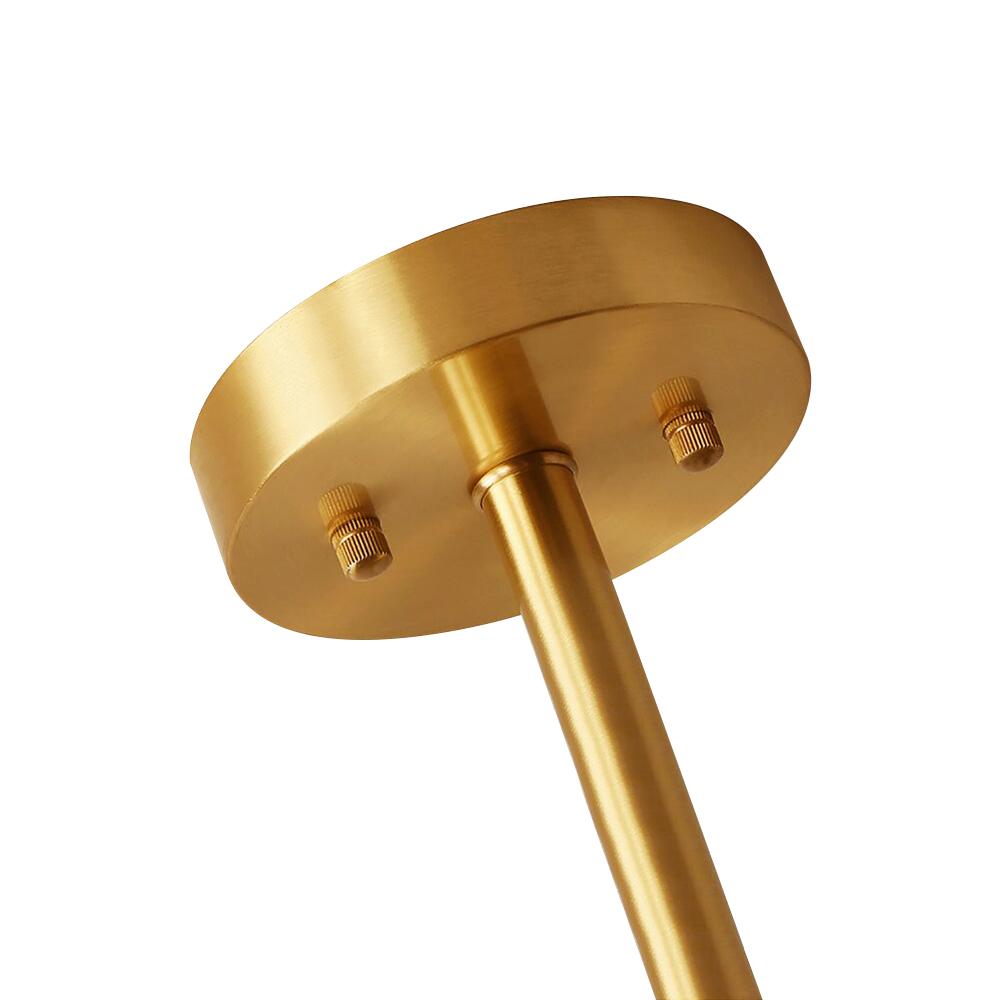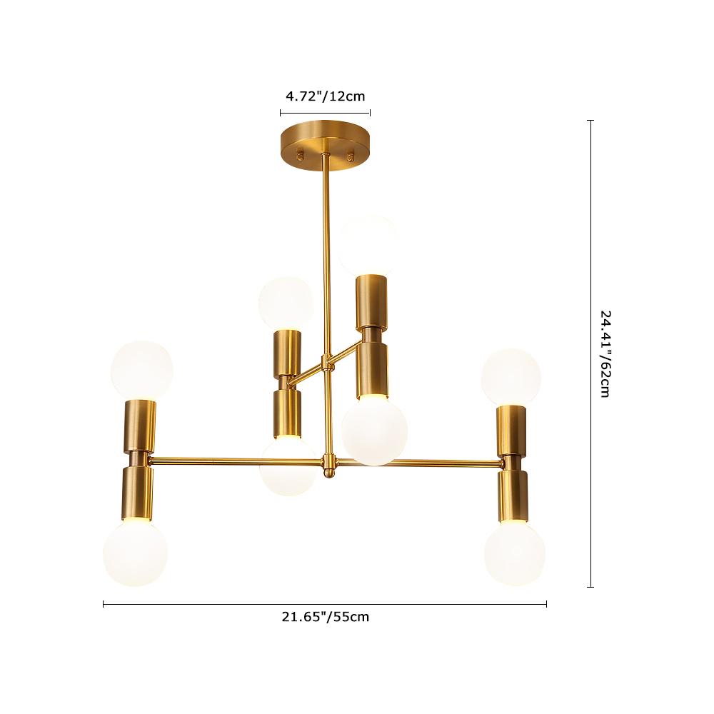 2000-luvulle tuotu klassinen vetovoima, tässä messinkisessä lineaarisessa kattokruunussa on suora alaspäin suuntautuva napa, joka tukee kahta vaakasuuntaista vartta eri suuntiin. Tämä 8 valon kattokruunu on yhteensopiva keskikantaisten E26/E27-polttimoiden kanssa (ei sisälly toimitukseen), kun ylös- ja alaspäin olevat kantat sijaitsevat kummankin varren päässä. Mikä vielä parempaa, tähän moderniin kattokruunuvalaisimeen voidaan asentaa himmennyskytkin ja himmennettävät polttimot (molemmat eivät sisälly toimitukseen) oikean määrän valaistukseen päivä- ja yöaikaan. Tämä moderni 8 valon messinkinen lineaarinen kattokruunu on sopivan kokoinen, 55 cm leveä x 24,41 tuumaa (62 cm), jotta se voidaan kiinnittää ruokasaliin, olohuoneeseen, makuuhuoneeseen, eteiseen ja eteiseen varastamatta esitystä.Detail