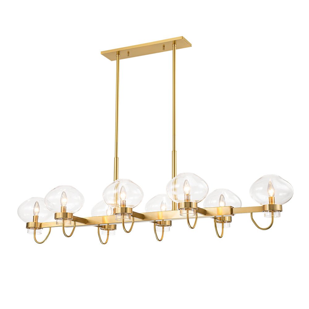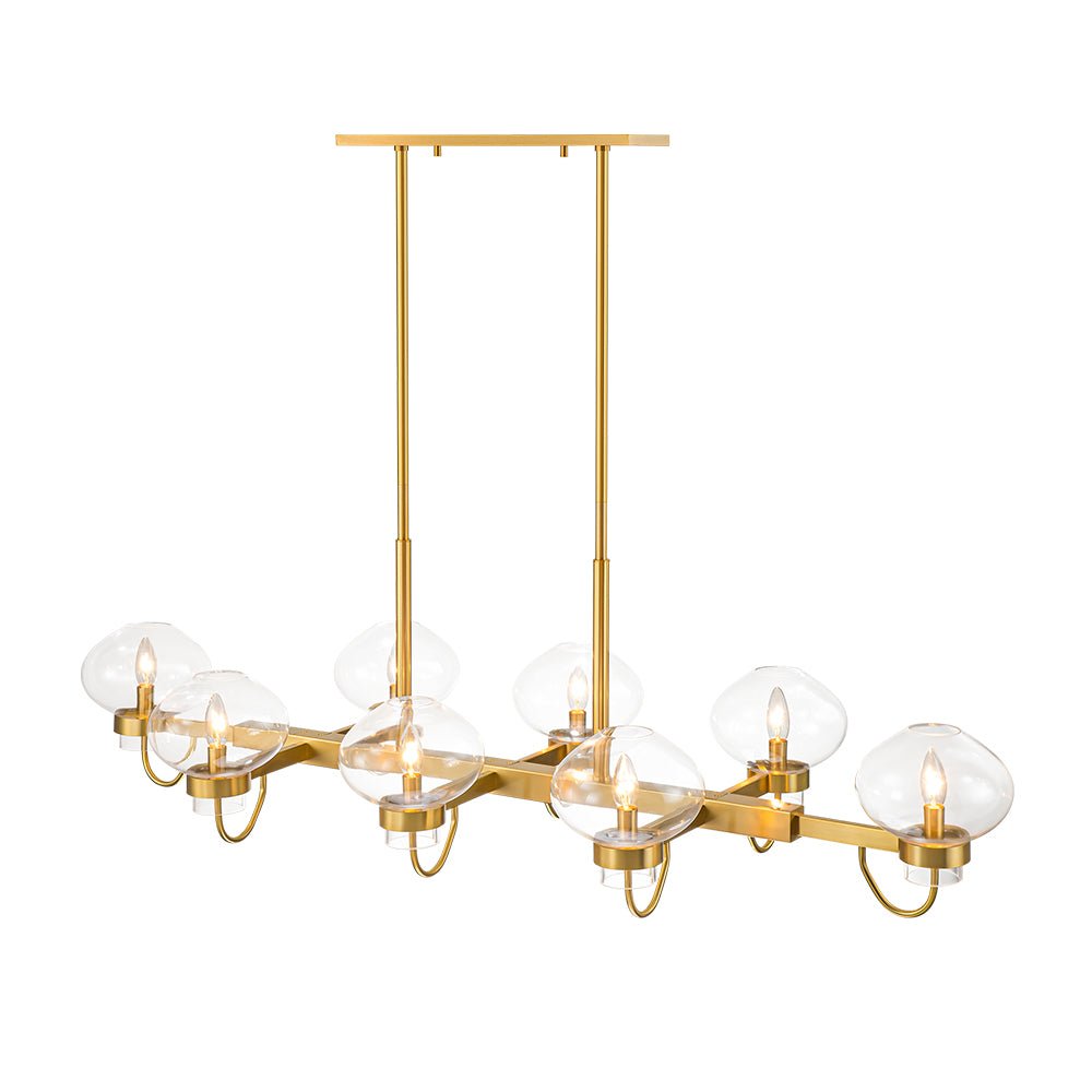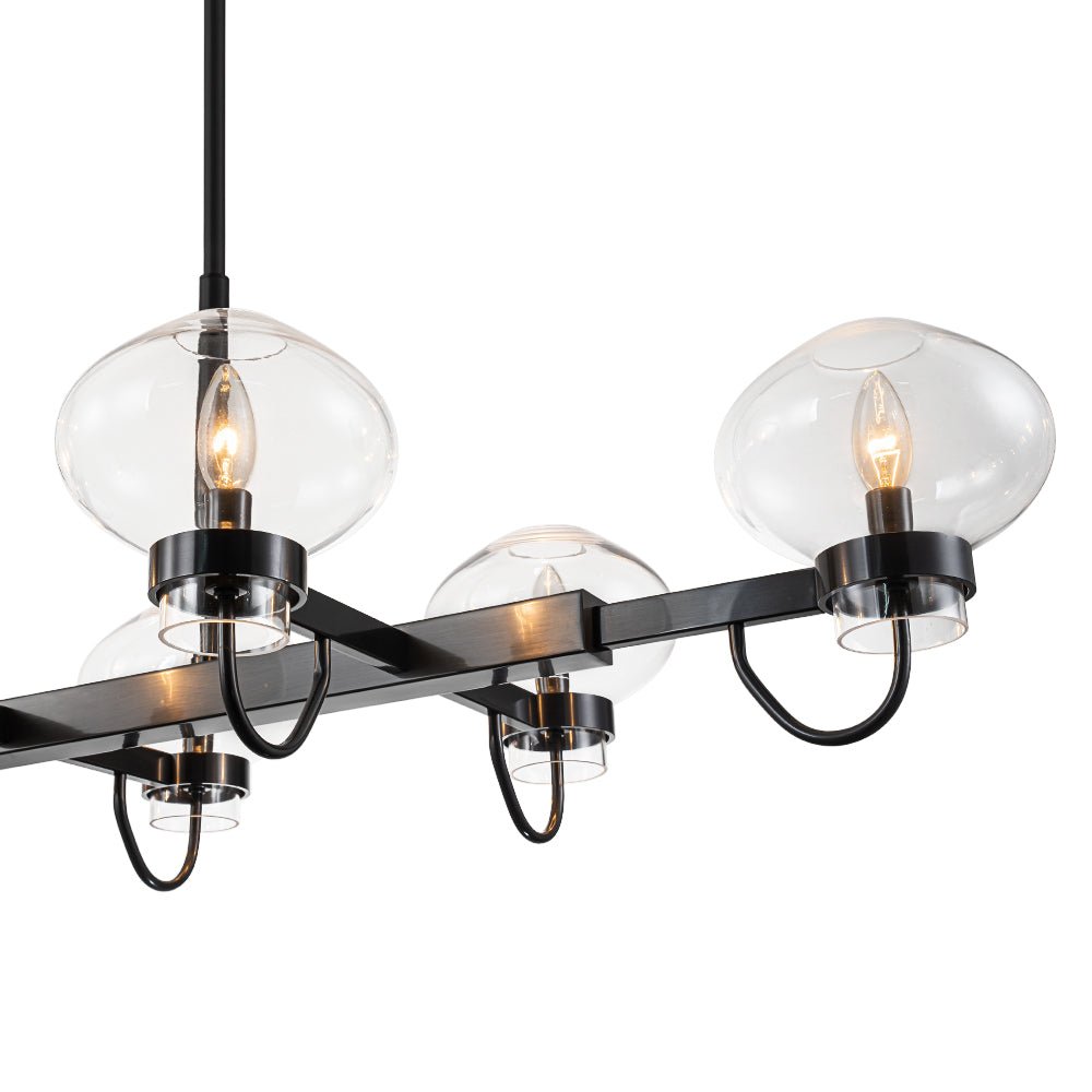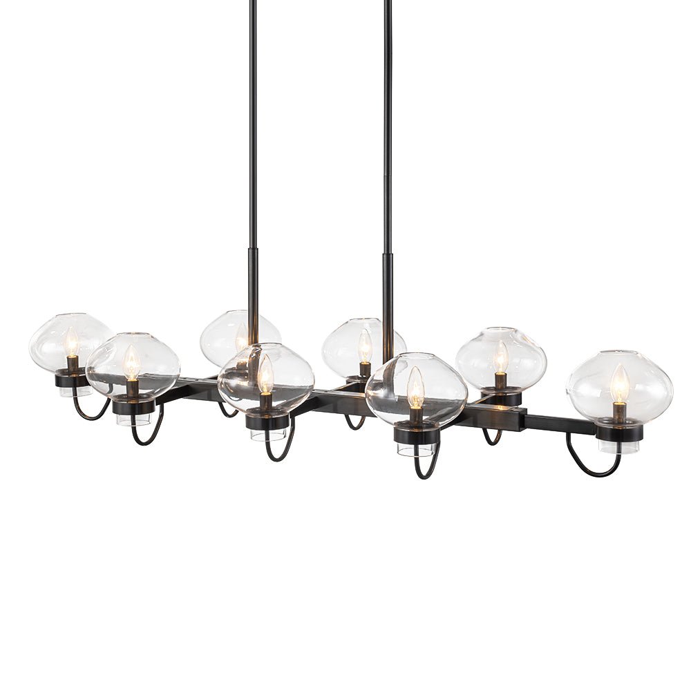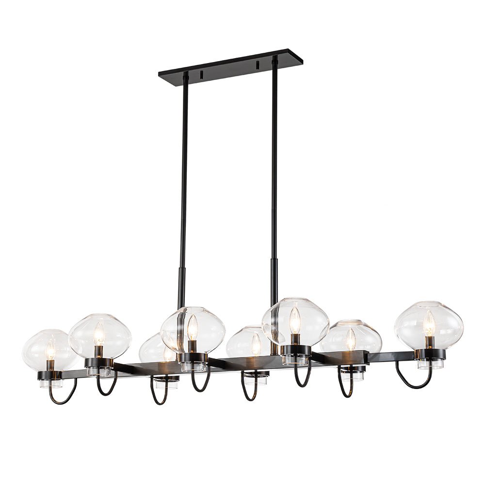 Kahdeksan valoa • Lineaarinen muotoilu • Kirkkaat lasivarjostimet • Sinkitty messinki/öljyhierottu musta • E12 kynttelikköpolttimot (ei sisälly) • Kiinteä • UL-listattu