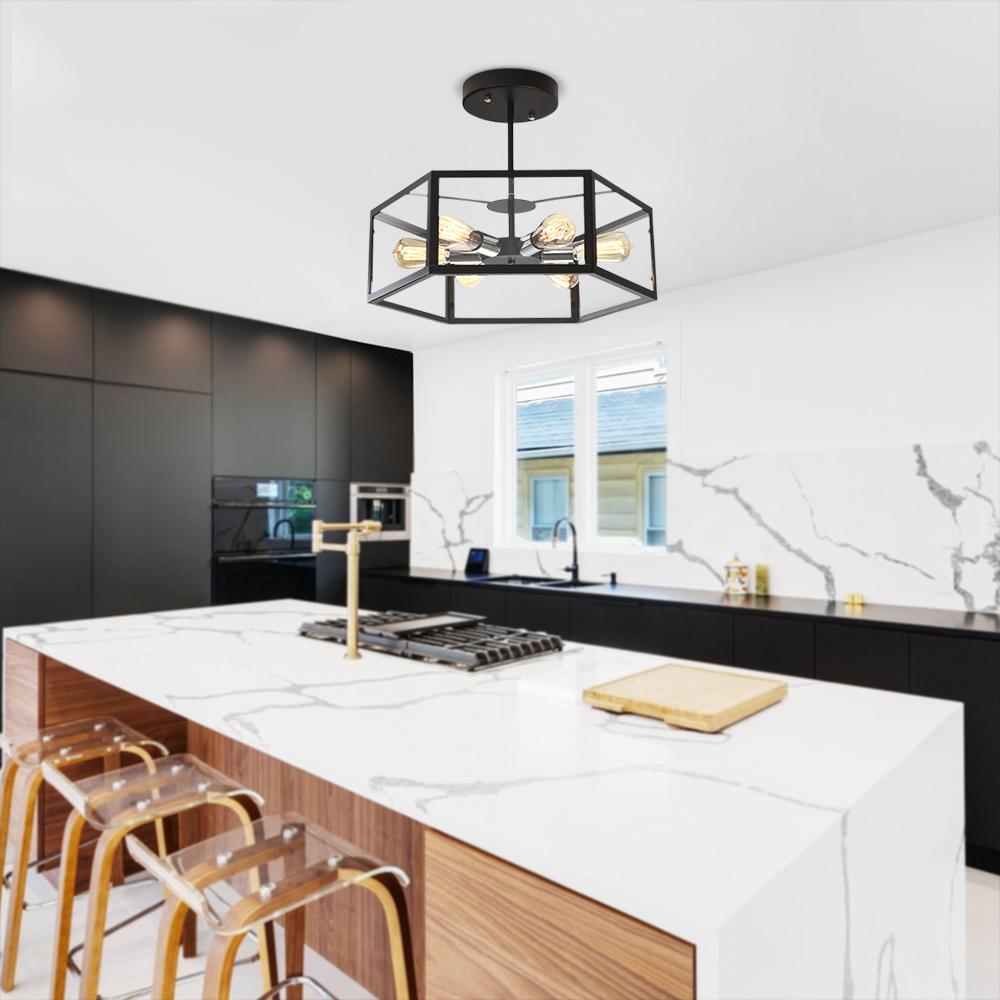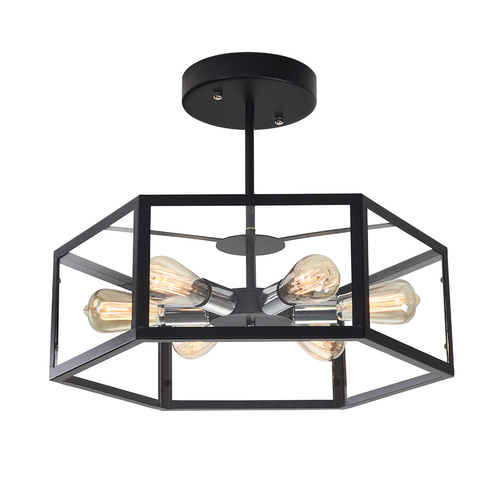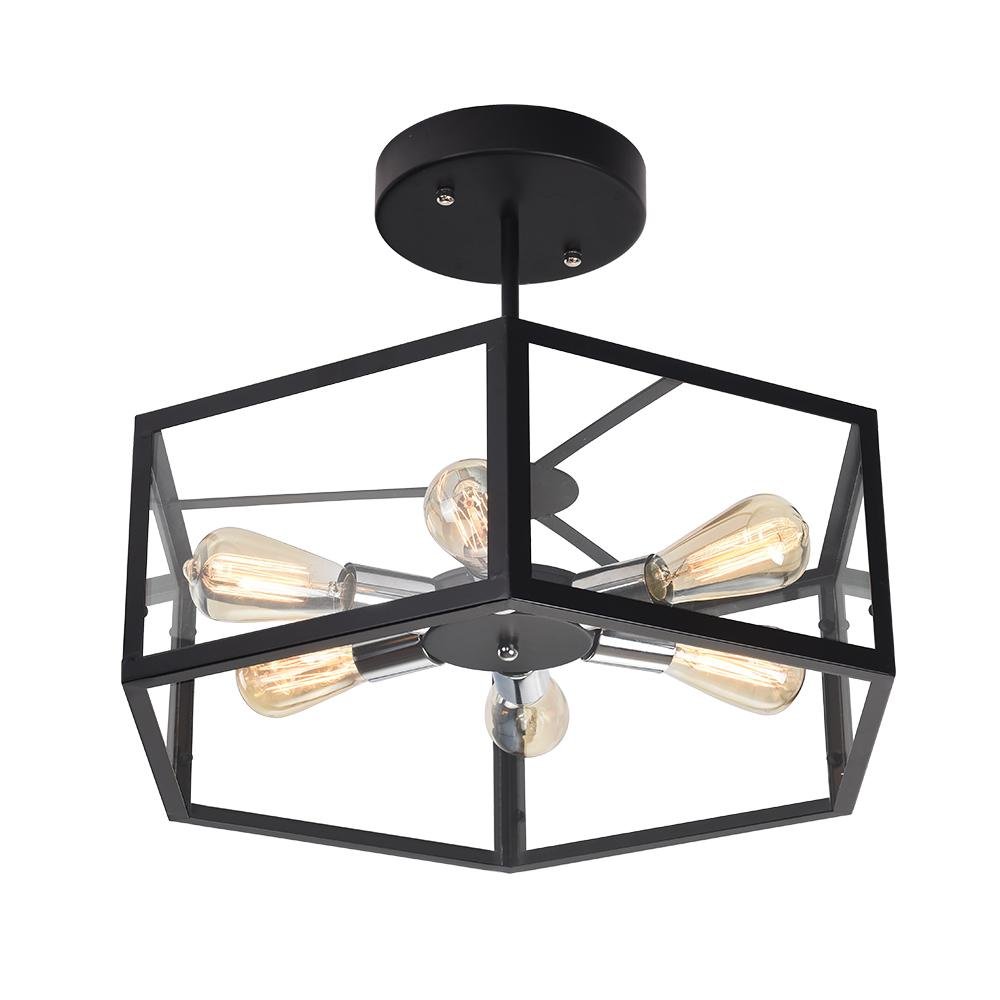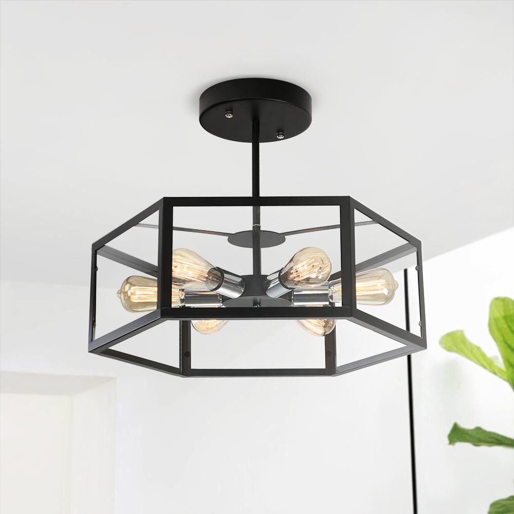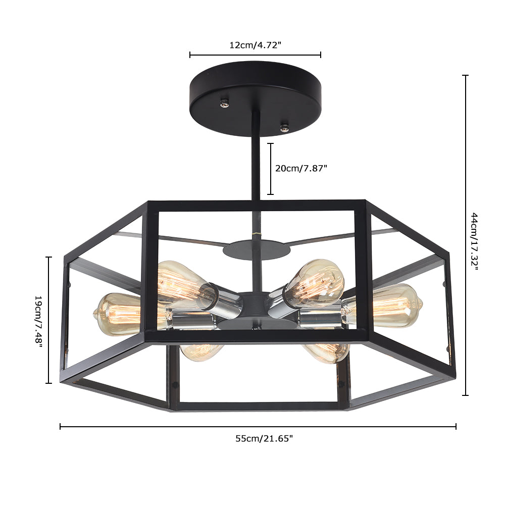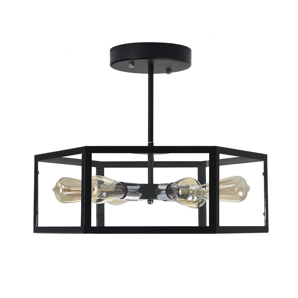 Tässä metallista ja akryylistä valmistetussa puolitasossa asennettavassa kattovalaisimessa on tavallinen kuusikulmainen rummun muotoinen varjostin, joka kiinnittää kattoon. Musta viimeistely lisää hillitty mutta komea silauksen tähän geometriseen kattovalaisimeen. Yhteensopiva kuuden keskipitkän E26/E27-polttimon kanssa kumpaankin suuntaan (ei sisälly toimitukseen), tämä musta puolitaskuun asennettava valaisin valaisee huonettasi runsaasti. Tämä musta geometrinen kattovalaisin on 55 cm leveä ja 19 cm korkea. Se sopii täydellisesti olohuoneeseen, makuuhuoneeseen, ruokailuhuoneeseen, keittiöön ja eteiseen.Detail