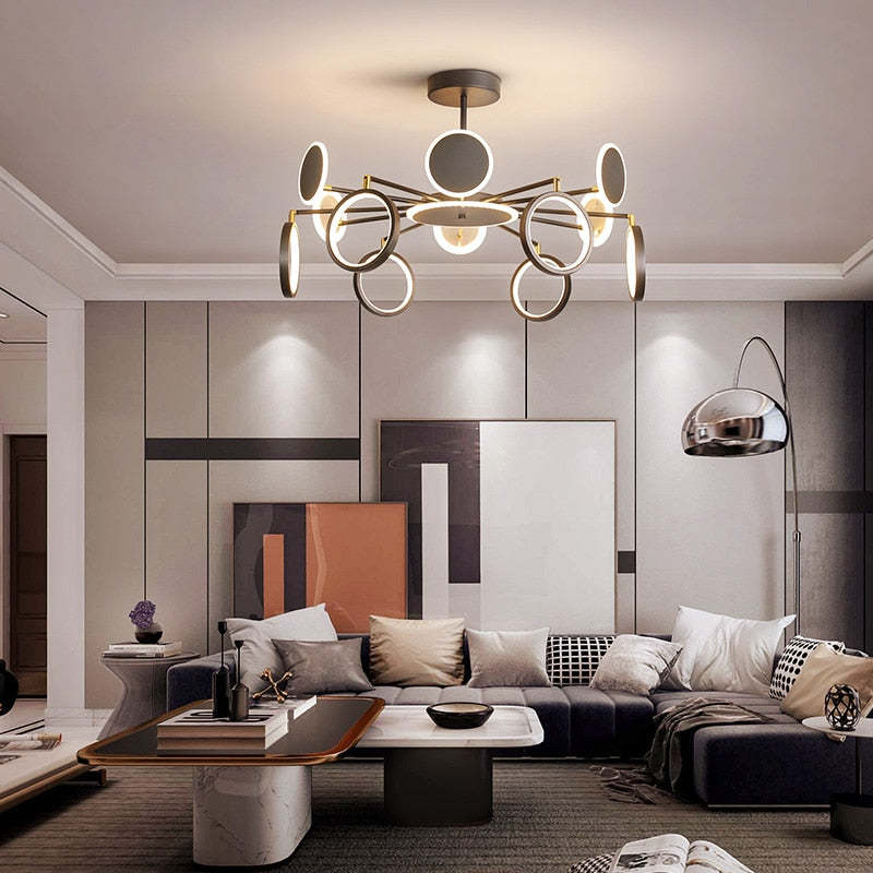 Moderni led-kattokruunu, geometrinen, musta, metalli/akryyli