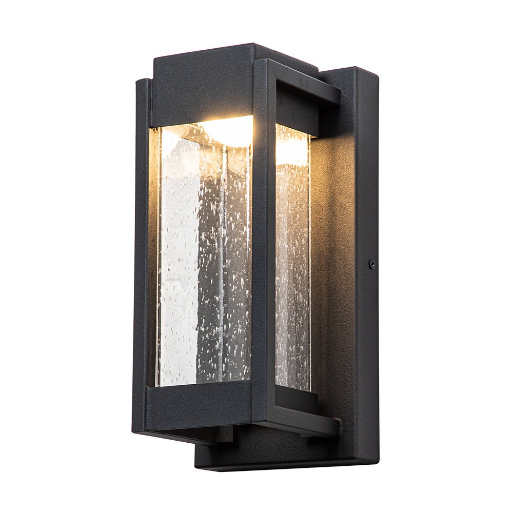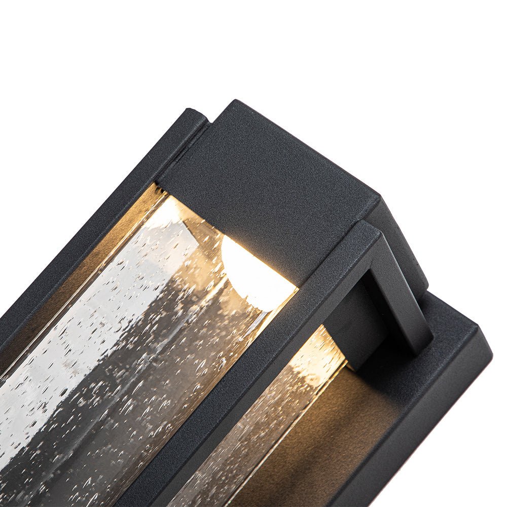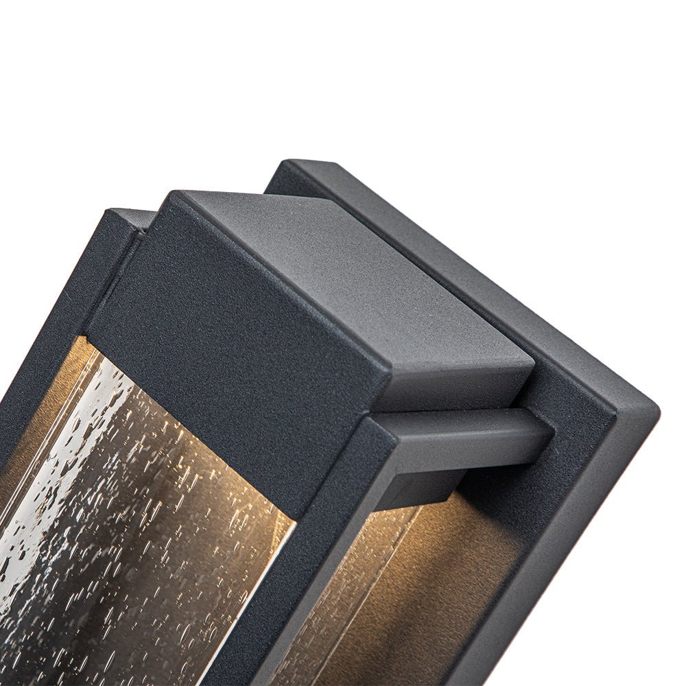 Ulkovalo • IP45 Vedenpitävä rakenne • Suorakaidelaatikko • Siemenlasi • Musta viimeistely • 10 W LED • 3000K • 800 Lms • Kiinteä • UL-listattu