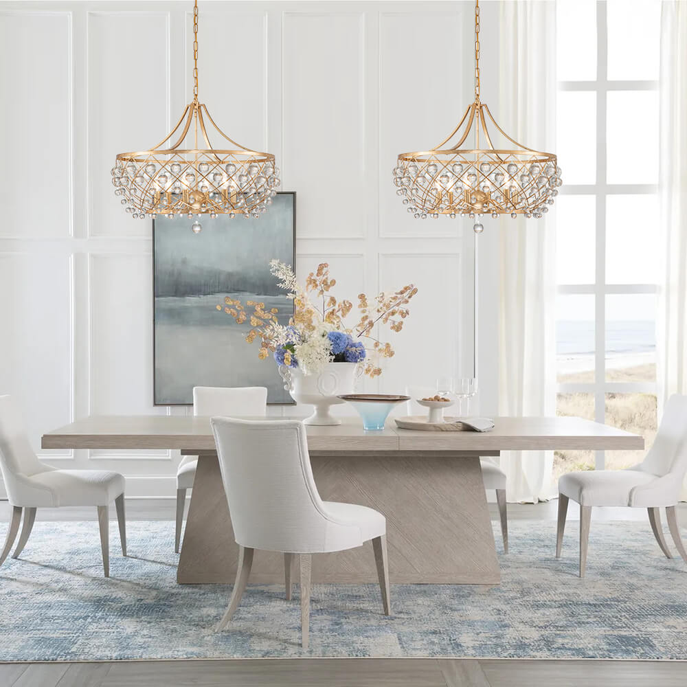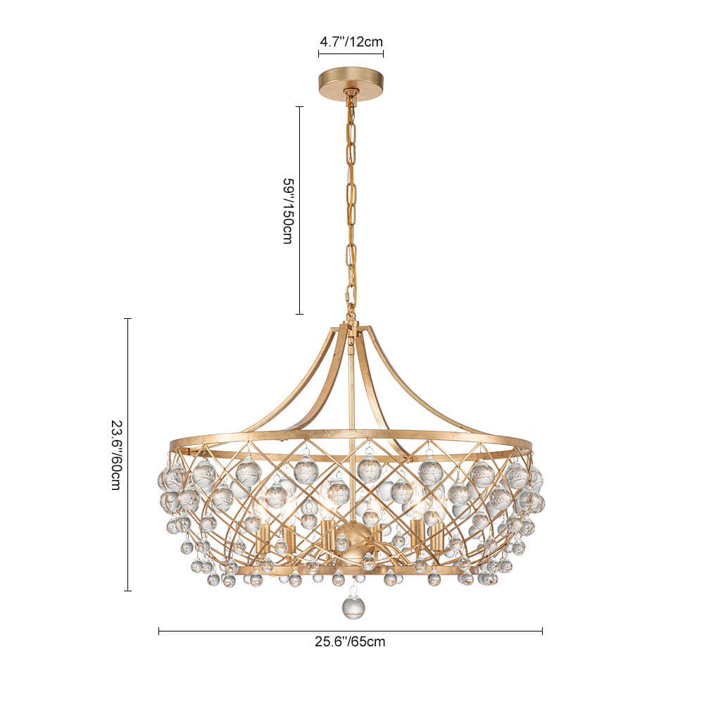Tämä kristalliriippuvalaisin on sydämenpysäytys, joka luo lumoavan ja ylellisen näytön mihin tahansa moderniin ja vuosisadan puoliväliin. Säädettävällä ketjulla ripustettu pyöreä ristikkokehys roikkuvilla lasikristallipalloilla leikkii kuin kirkkaista sadepisaroista tippuva verkko. Upea messinkiviimeistely nostaa tämän lasikristallipallokruunun uudelle tasolle, joka erottuu avaruudesta. Kuuden E12/E14-lampun (ei sisälly toimitukseen) häikäisyssä tämä moderni messinkipyöreä kristallikruunu on paras tapa loihtia ja korostaa ruokailutilaa, olohuonetta, eteistä, eteistä tai makuuhuonetta.Tiedot