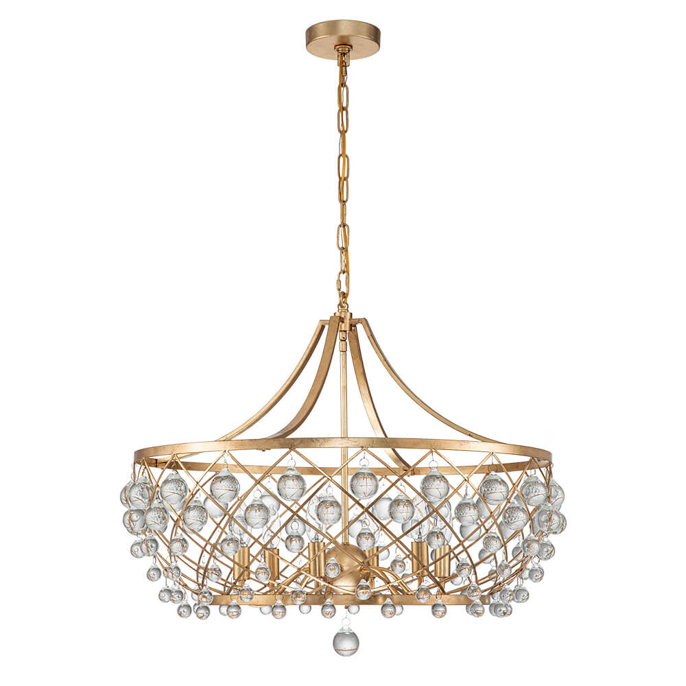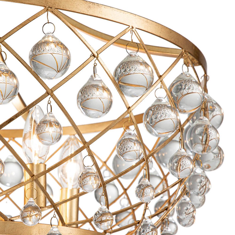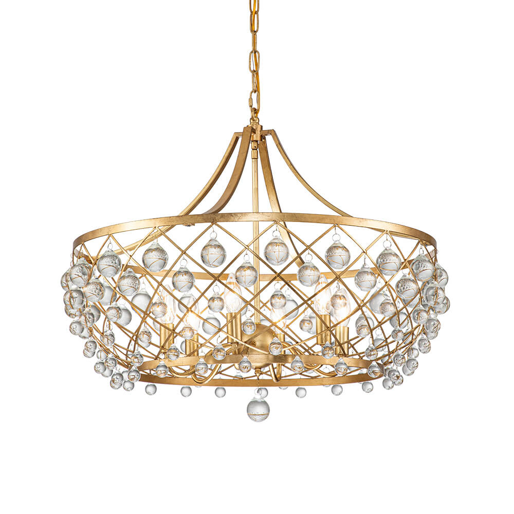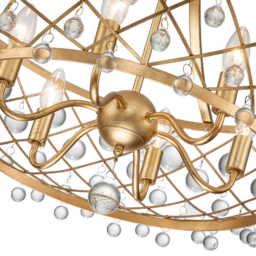 Kuusi valoa • Messinkiviimeistely • Metalliverkkokehys • Lasikristallipallot • E12/E14-polttimot (ei sisälly) • Kiinteä • UL-listattu