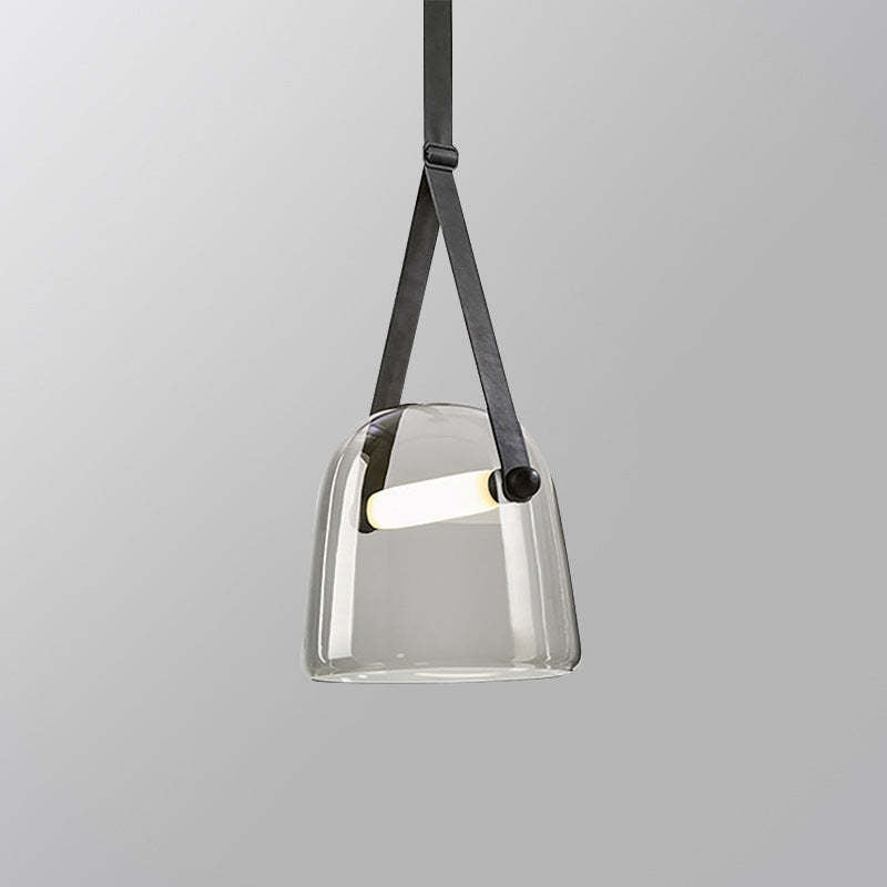 Moderni pohjoismainen nahka-/lasiriippuvalaisin, harmaa/valkoinen