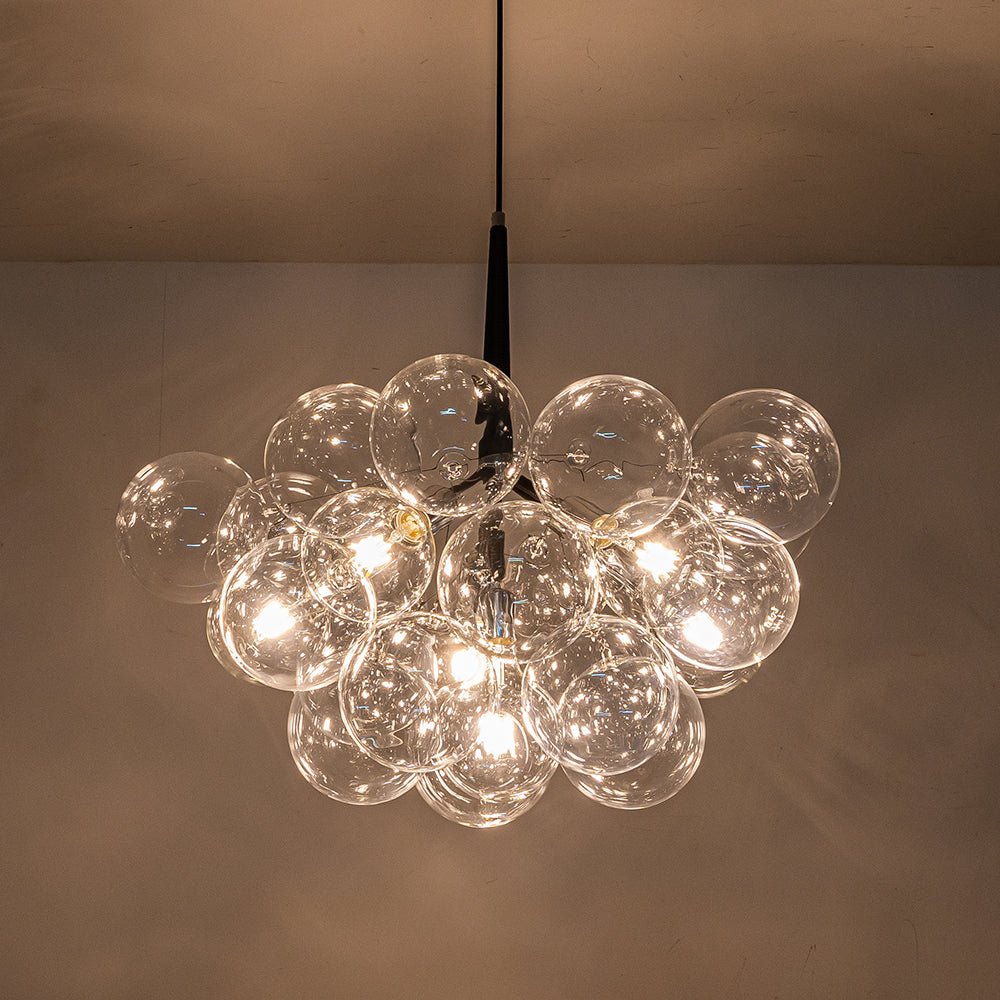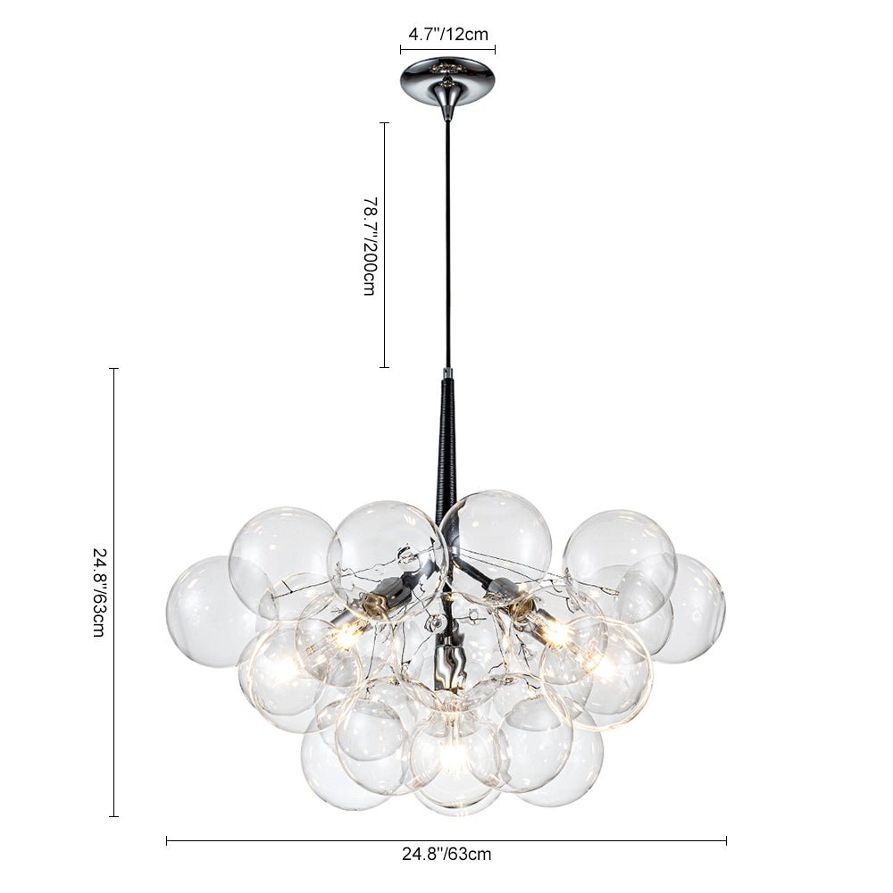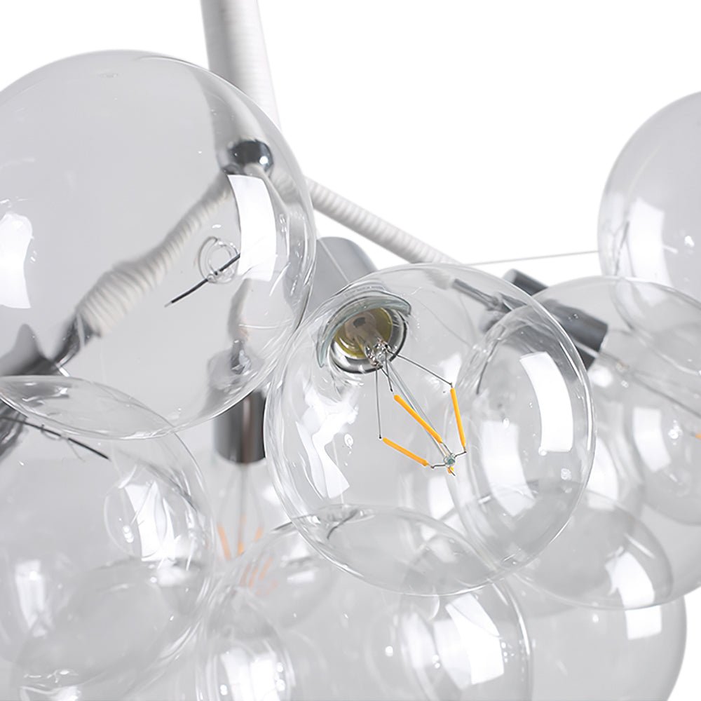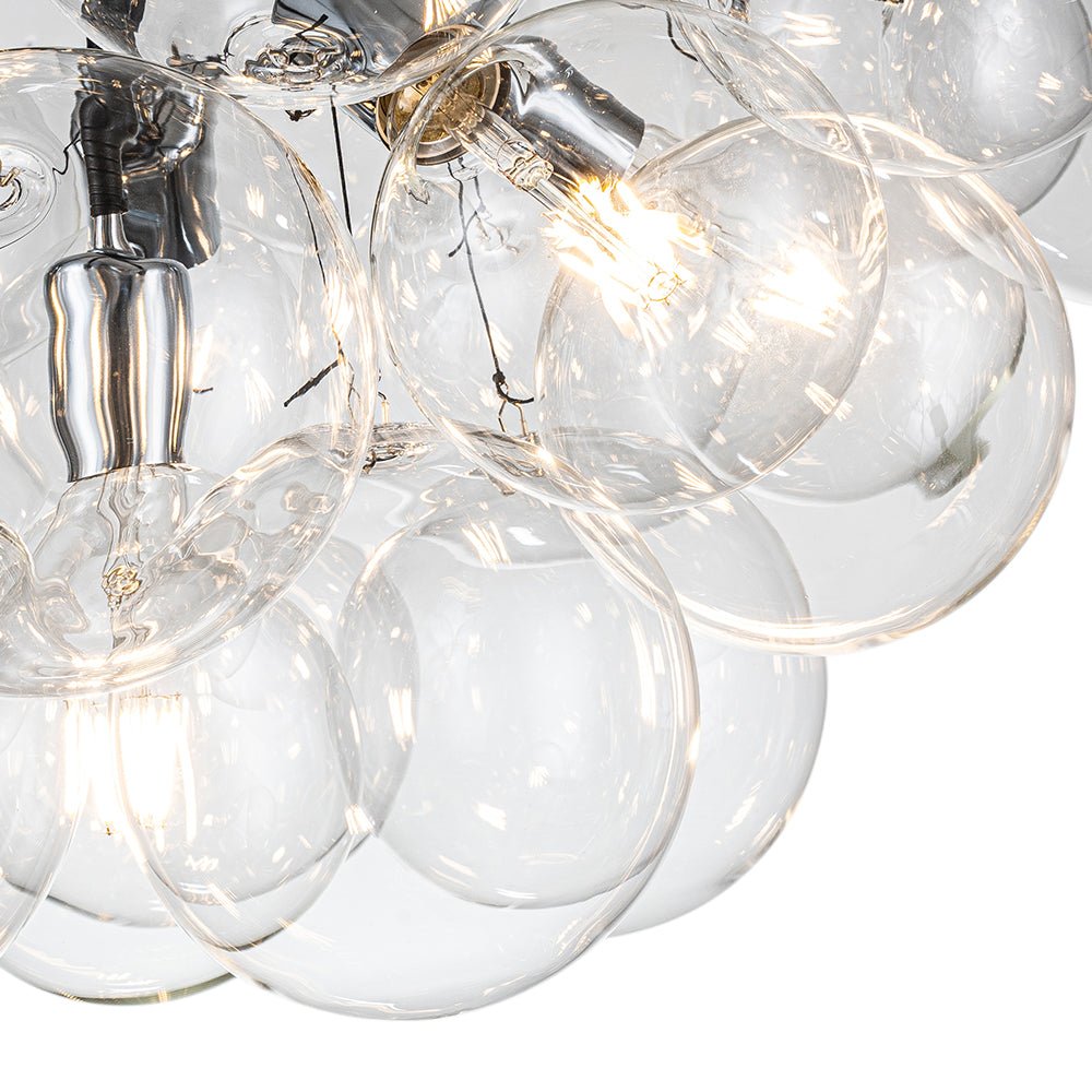Tämä lasipallokuplakruunu, joka on täydellinen valinta visuaalisen keskipisteen luomiseen ja tilan valaisemiseen, esittelee joukon läpinäkyviä ilmapalloja, jotka kelluvat tilassa ilmavasti. Tukeva metallitanko, jossa on useita varsia, jotka tukevat pallomaisia lasivarjostimia alaspäin, esittelee klusterin kattokruunua. Kuusi 6 W:n LED G125 -polttimoa lisäävät kirkkautta ja lisäävät samalla fantasiatunnelmaa. Valon ja inspiraation lähteenä jokapäiväiseen elämääsi tämä lasikuplakruunu on upea lisä olohuoneeseen, ruokailuhuoneeseen, makuuhuoneeseen ja eteiseen.