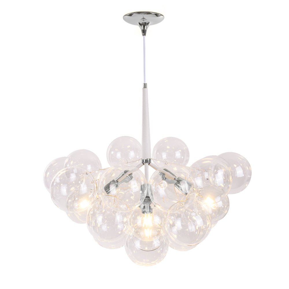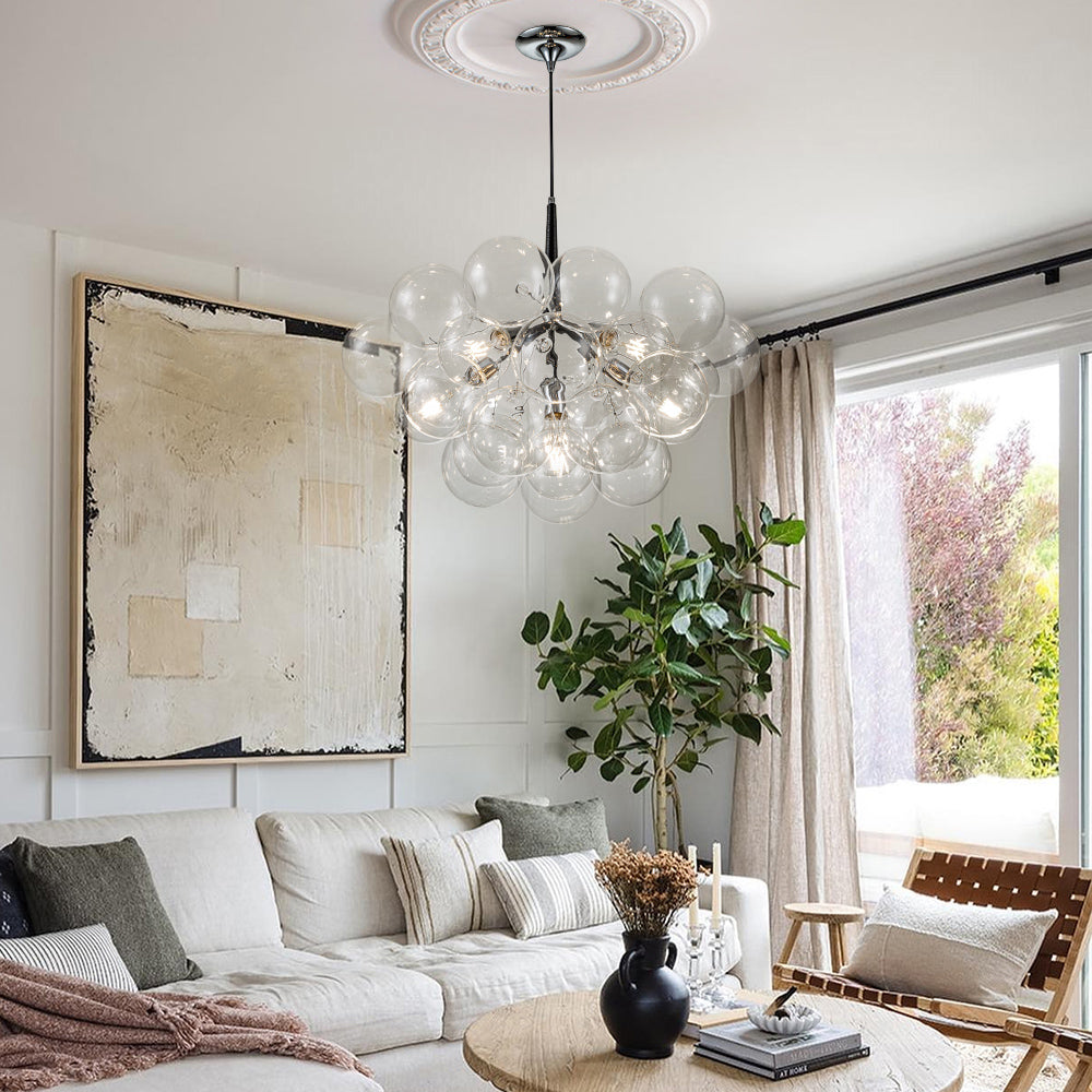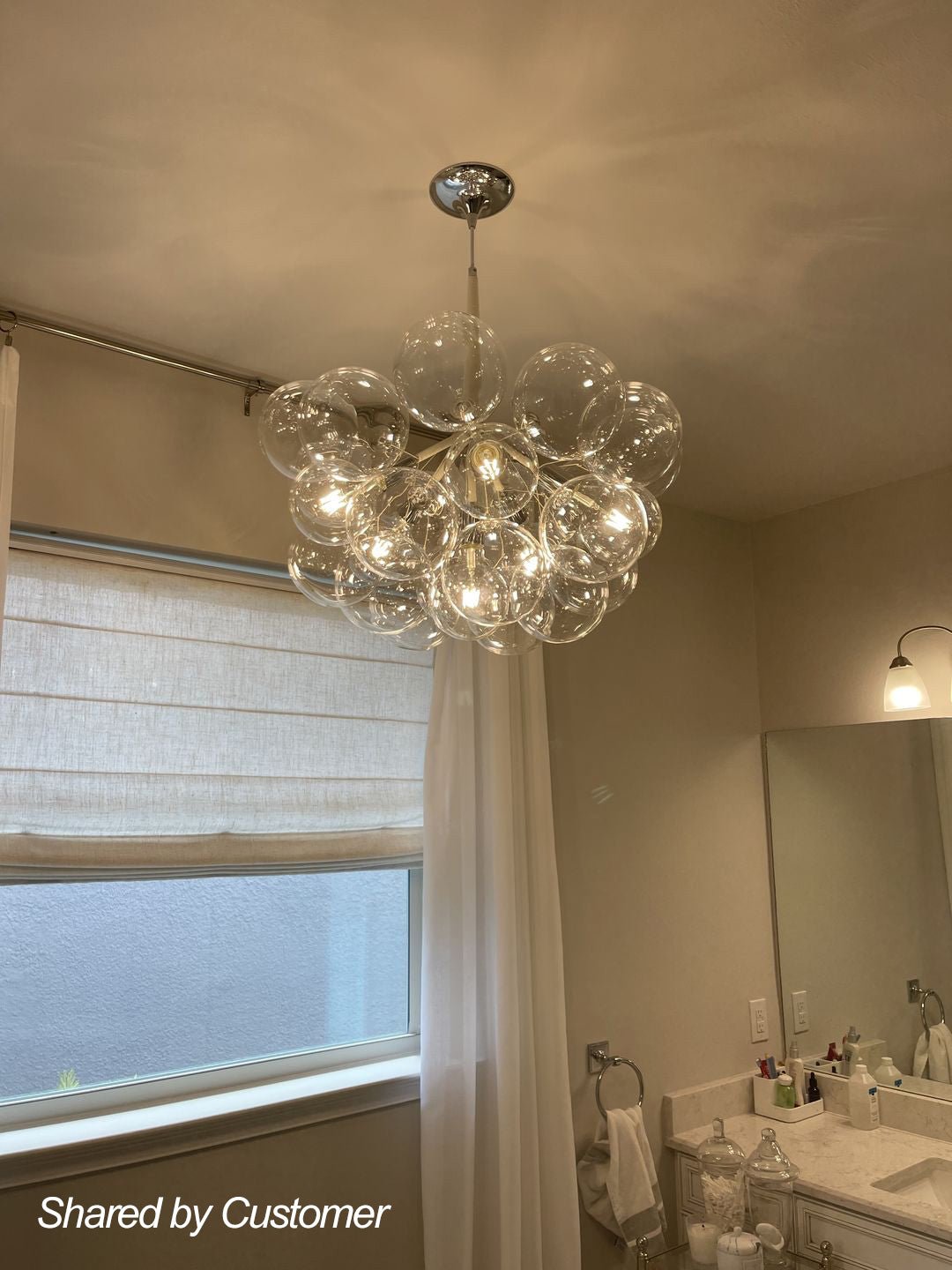 Tämä lasipallokuplakruunu, joka on täydellinen valinta visuaalisen keskipisteen luomiseen ja tilan valaisemiseen, esittelee joukon läpinäkyviä ilmapalloja, jotka kelluvat tilassa ilmavasti. Tukeva metallitanko, jossa on useita varsia, jotka tukevat pallomaisia lasivarjostimia alaspäin, esittelee klusterin kattokruunua. Kuusi 6 W:n LED G125 -polttimoa lisäävät kirkkautta ja lisäävät samalla fantasiatunnelmaa. Valon ja inspiraation lähteenä jokapäiväiseen elämääsi tämä lasikuplakruunu on upea lisä olohuoneeseen, ruokailuhuoneeseen, makuuhuoneeseen ja eteiseen.