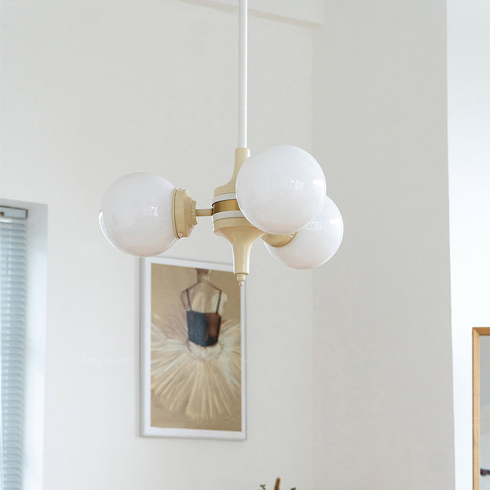 Tässä Cream Ball Glass Pendant Light -valaisimessa on tyylikäs kermanvärinen väripaletti ja valkoinen lasikuulavarjostin, joka luo raikkaan ja modernin ilmeen. Lasipallovarjostin tarjoaa pehmeän, tunnelmaa parantavan valaistuksen mihin tahansa tilaan. Lisää ripaus eleganssia kotisi sisustukseen tällä korkealaatuisella kattokruunulla.