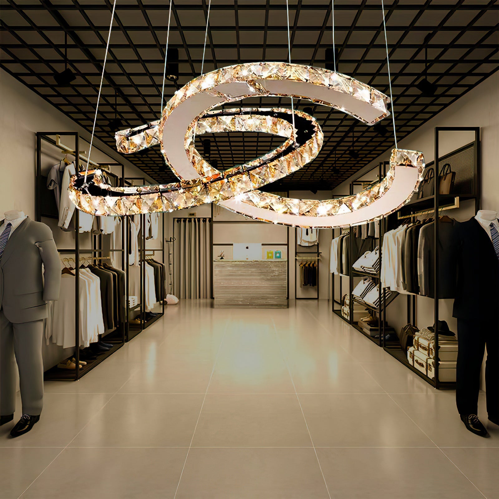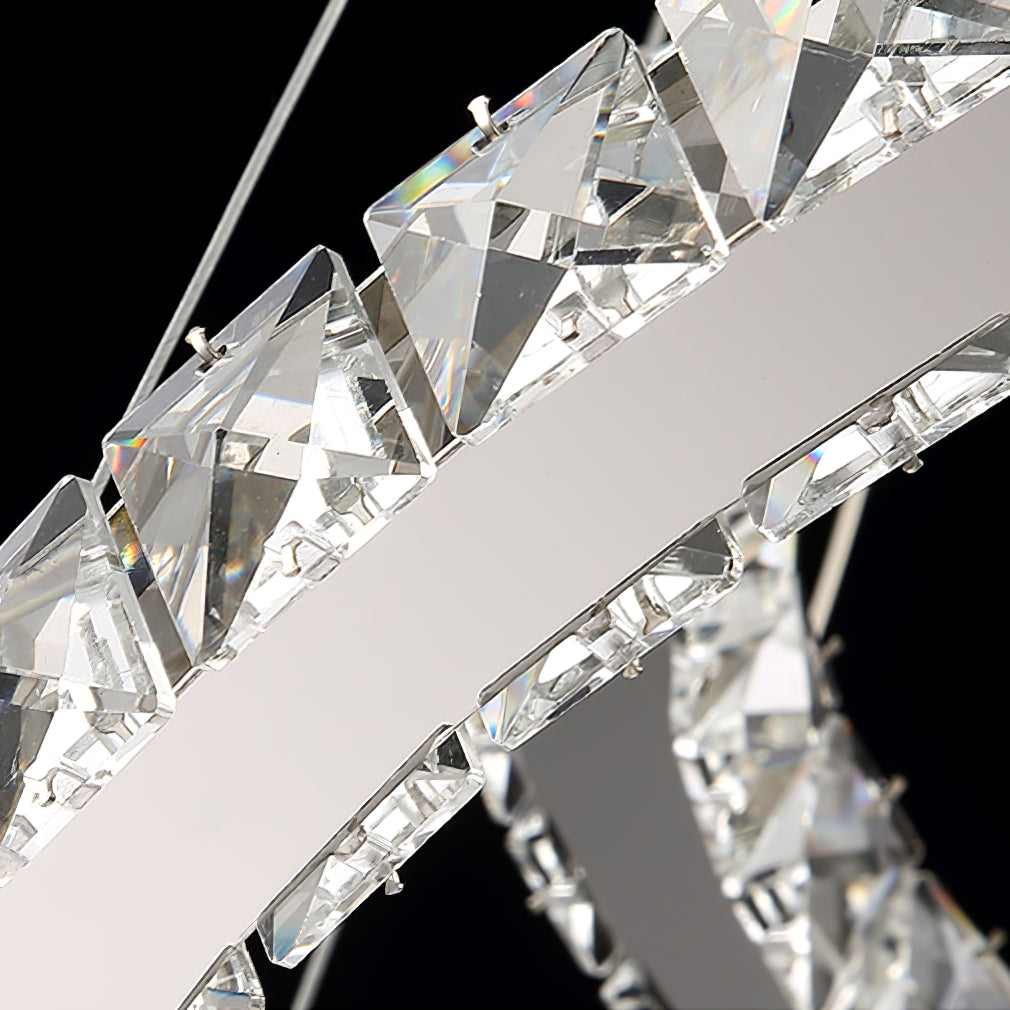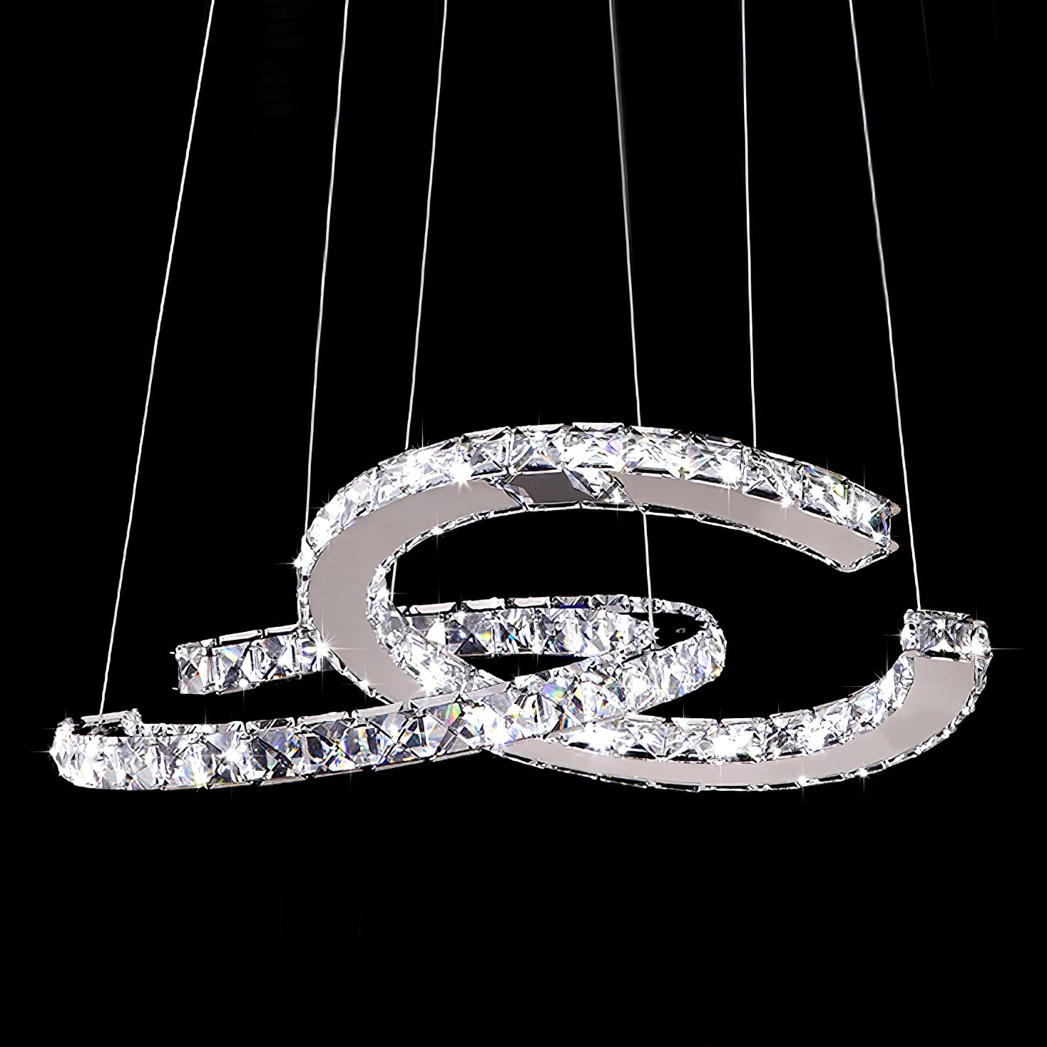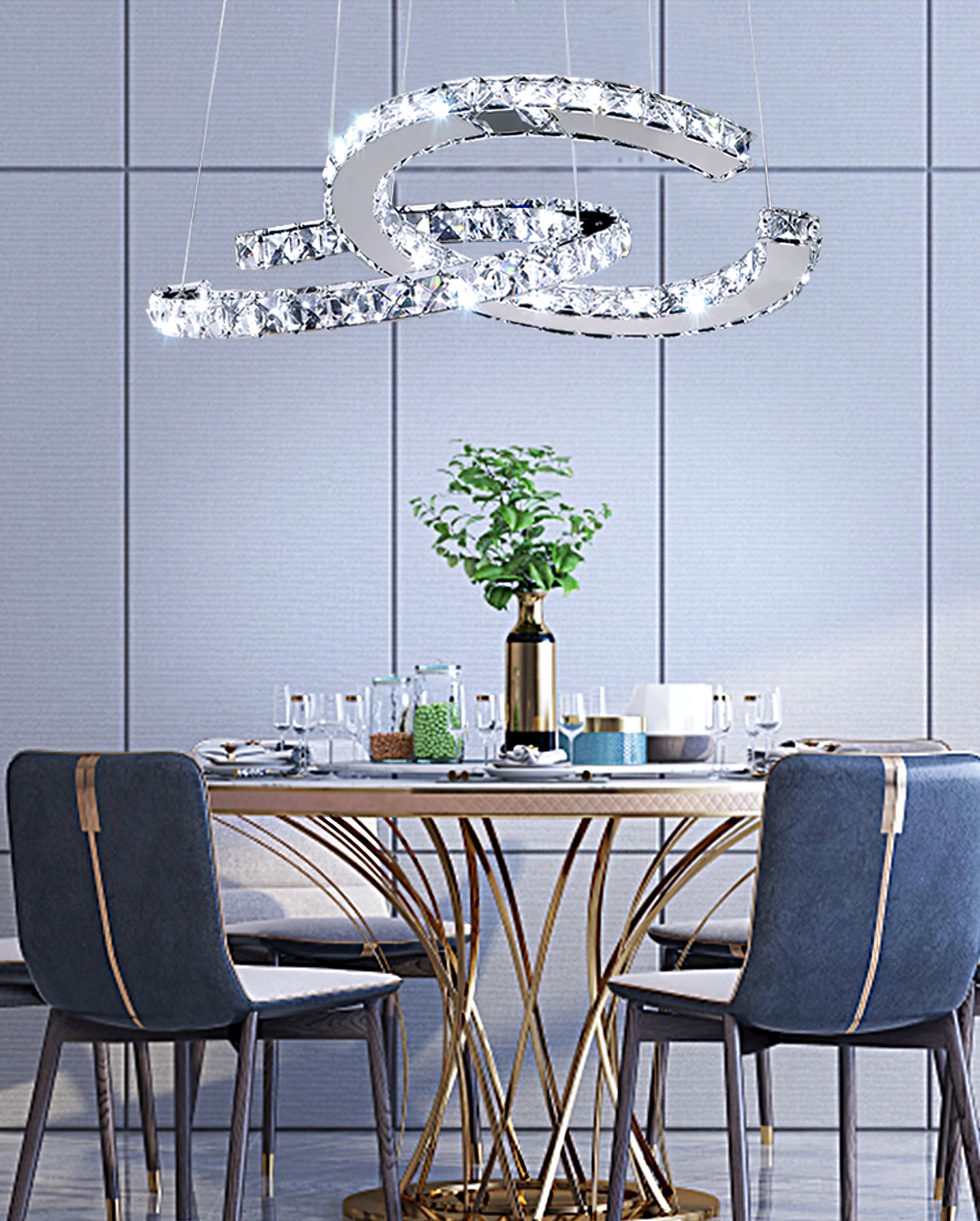 Tämä moderni kattokruunu on jotain hyvin erilaista ja lisää modernia tunnelmaa jokaiseen olohuoneeseen tai makuuhuoneeseen. Tässä upeassa valossa on niin paljon yksityiskohtia, että se on ilo silmille. Kattokruunu on valmistettu hopeasta ruostumattomasta teräksestä, johon on upotettu aitoja K9-kiteitä.