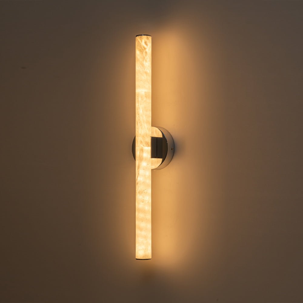 Tämä marmorinen LED-valaisin yhdistää luonnon kauneutta nykyaikaiseen yksinkertaisuuteen ja tarjoaa rauhallista ylellisyyttä ja hienostunutta eleganssia. Tässä 3000K LED:llä varustetussa meikkivalaisimessa on ohut mutta tilava putki, joka on valmistettu maitomaisesta marmorista, luoden kirkkaan ja tasaisen hehkun, joka virtaa tilassa helposti. Himmennettävällä toiminnolla tämä valaisin tarjoaa monipuolisen valaistuksen hallinnan, mikä lisää sekä käyttömukavuutta että toimivuutta. Tarkenna kylpyhuonettasi, wc-huonettasi, makuuhuonettasi tai olohuonettasi tällä lumoavalla valkoisella marmorilla varustettu LED-seinävalaisin.Tiedot